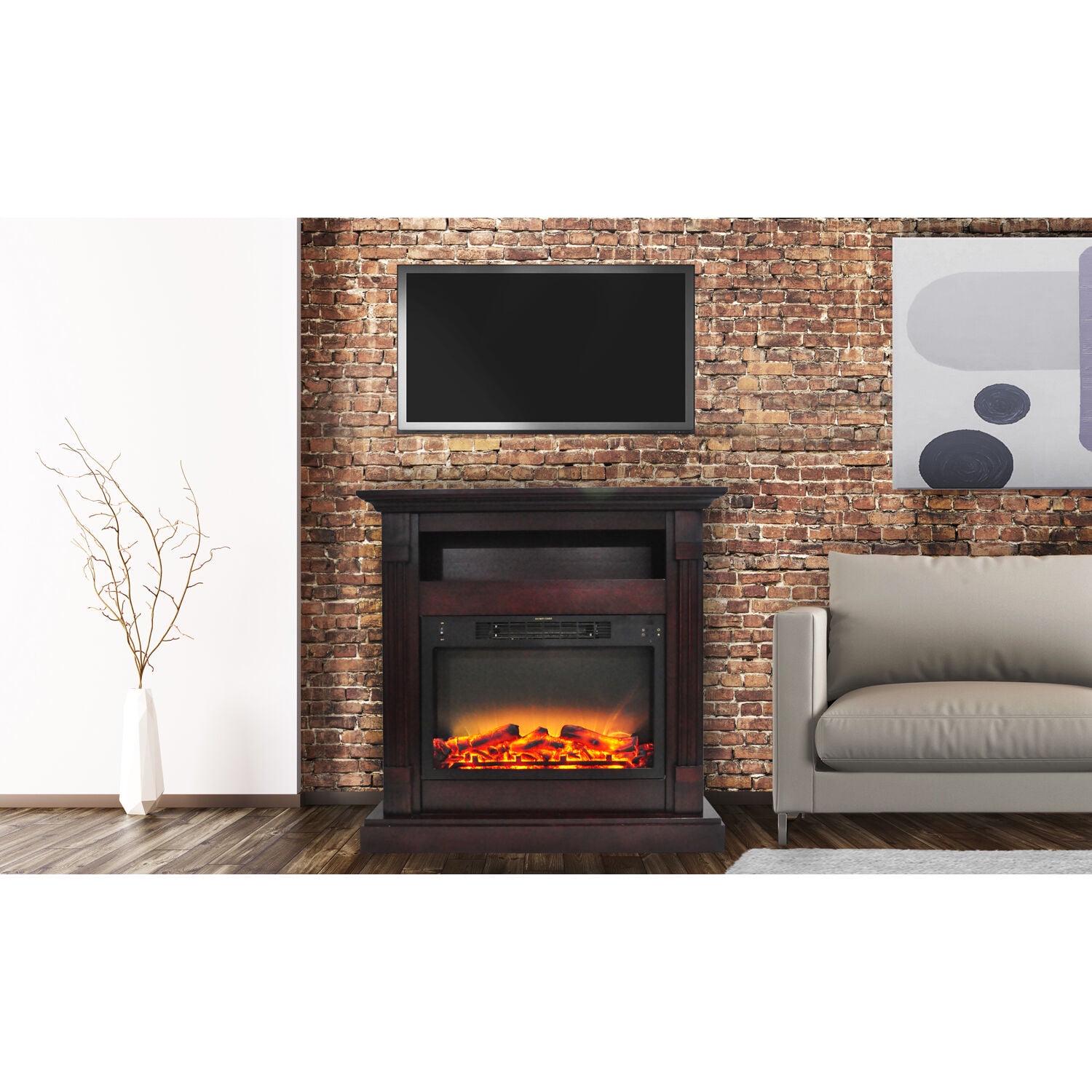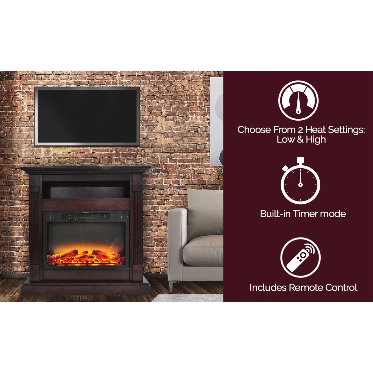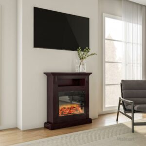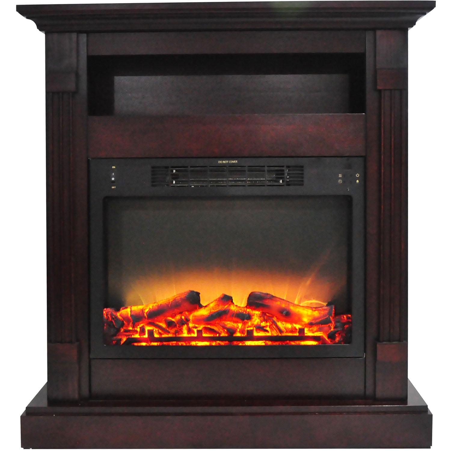 Cambridge Sienna 34” Freestanding Electric Fireplace with Enhanced Log Insert, Mahogany