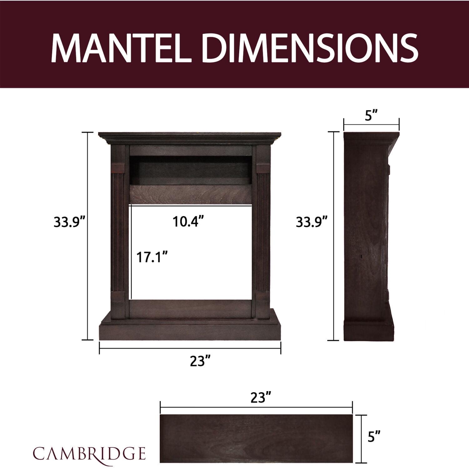 – MDF mantel frame with extended mantel top, crown molding, and fluted pilasters