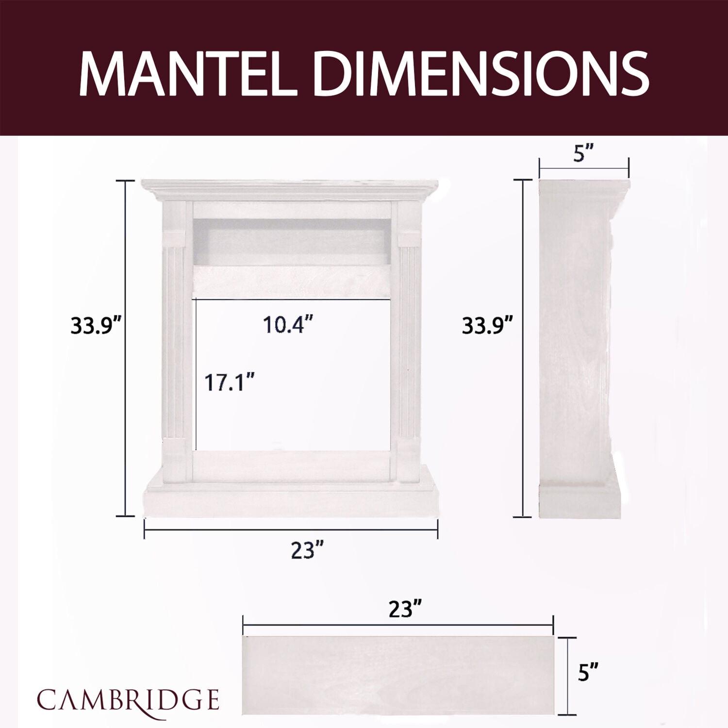 - Sturdy MDF frame features an extended mantel top, crown molding, and fluted pilasters