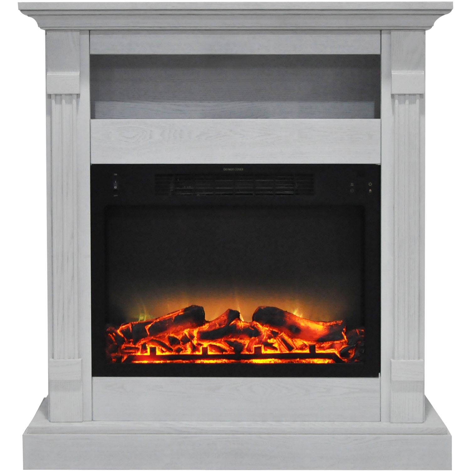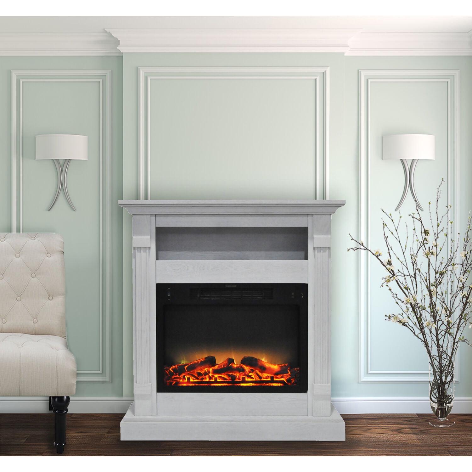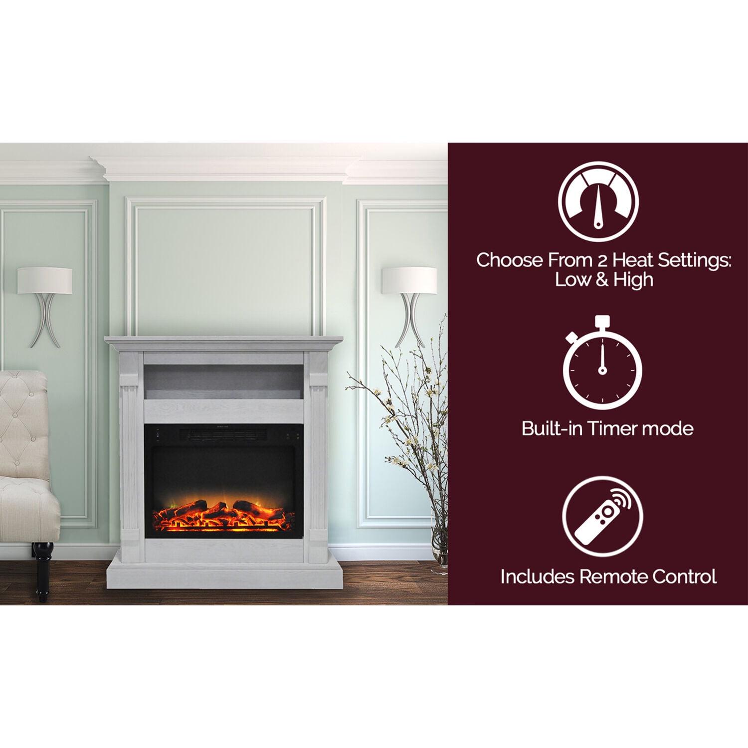 - Sienna 34 in. electric fireplace with enhanced log display and White mantel