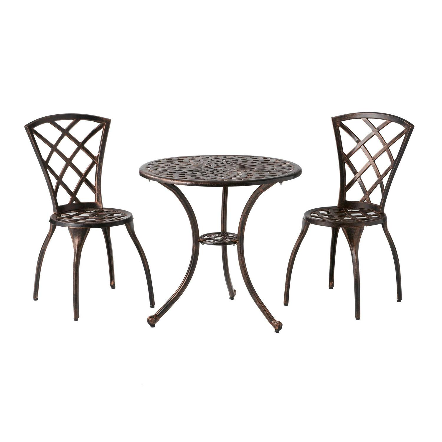 – This modern bistro set includes 2 matching chairs and 1 table