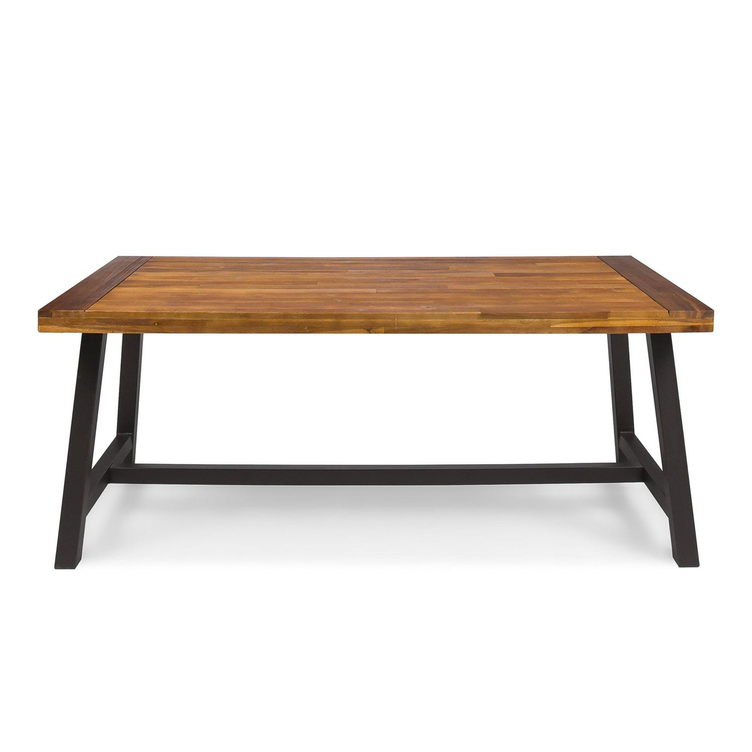 Bring your family together for a summer of outdoor memories. Crafted from rich acacia wood and powder-coated metal legs, our stunning dining table offers your backyard or patio space a stylish place to enjoy an afternoon barbeque or a hearty evening meal. Featuring a classic slat-panel tabletop and a study H-stretcher frame, this outstanding table brings an industrial-inspired aesthetic that can be easily matched with a variety of seating styles of your choice, making this the ideal addition to your home.