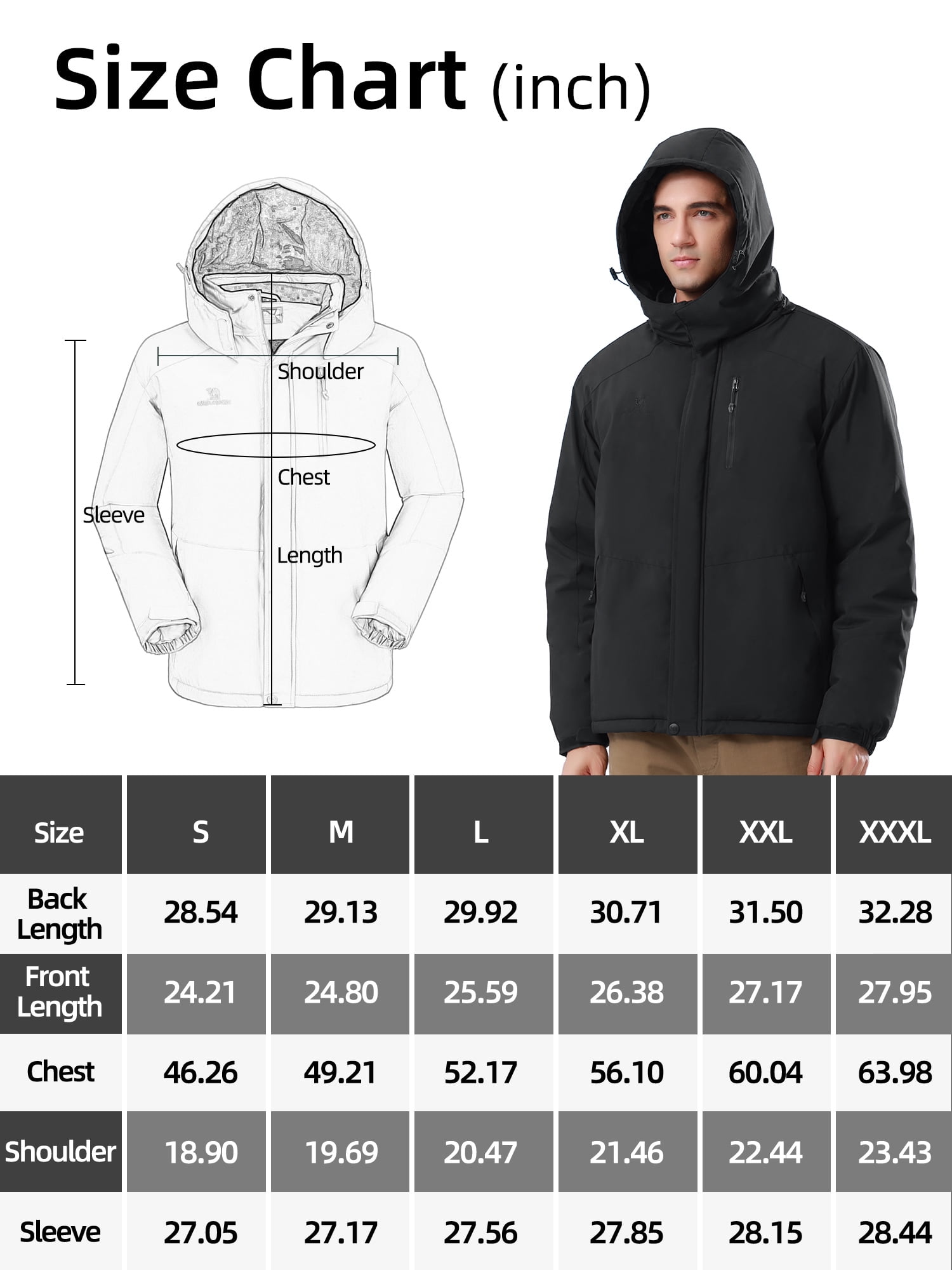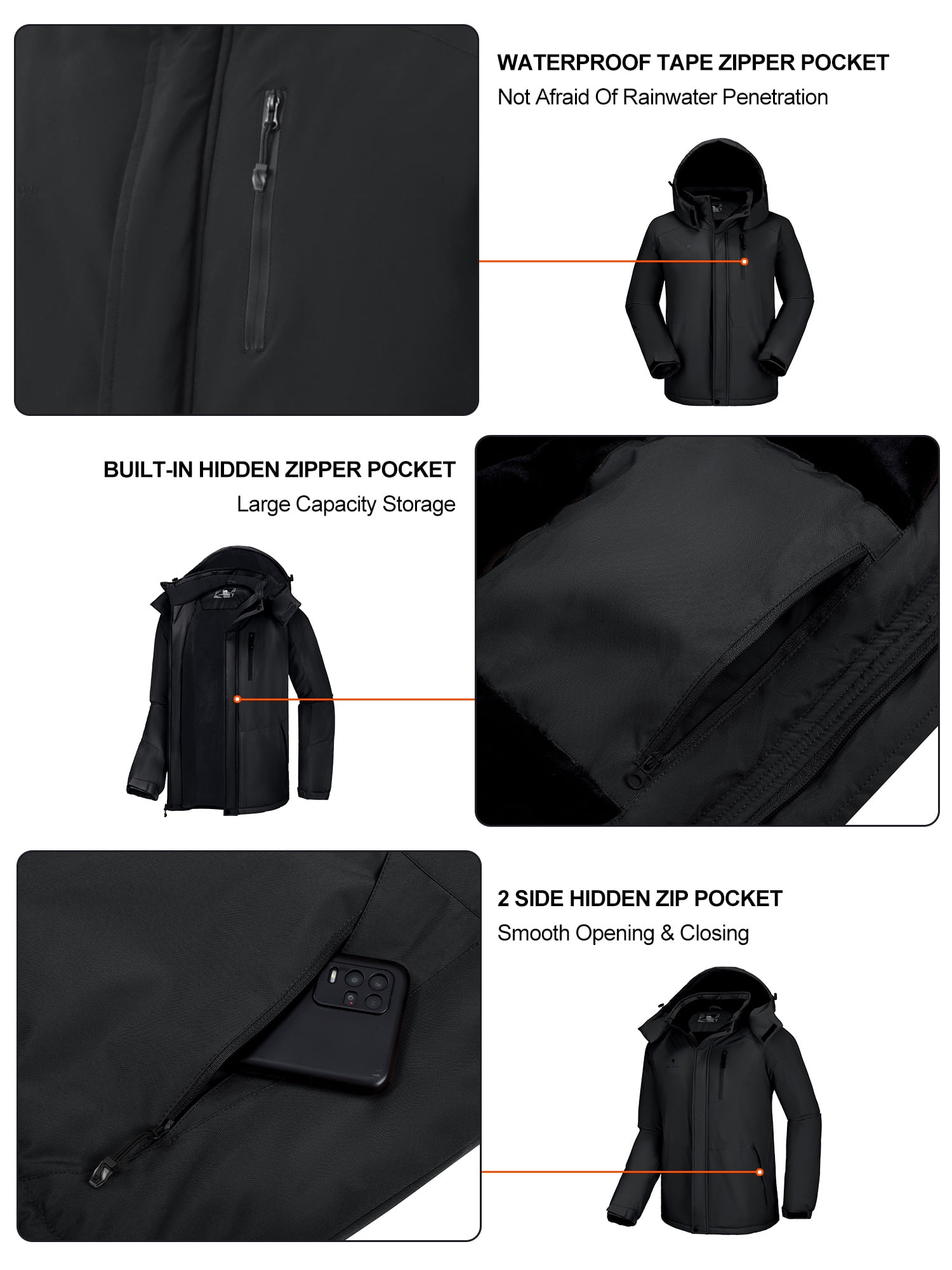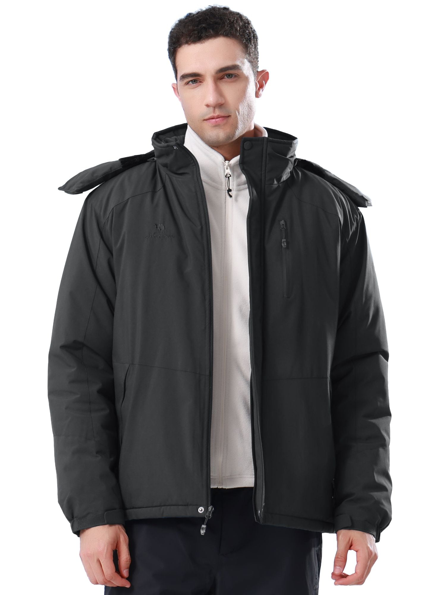 CAMEL Mens Ski Jacket Fleece Trekking Winter Coat Snow Jacket Hooded Windbreaker Hiking Snowboarding Jackets Black L