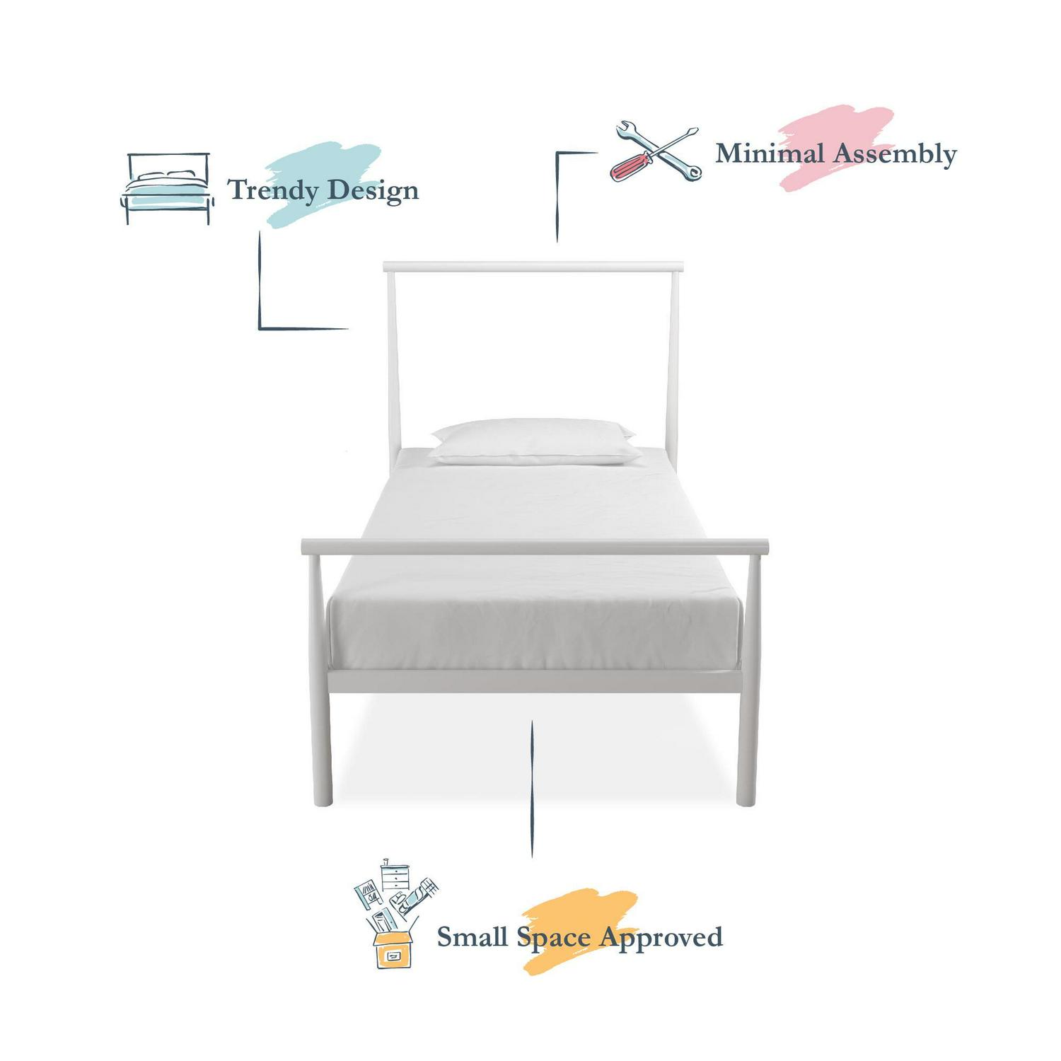 Camilla and James Vonda Metal Bed, Twin, White