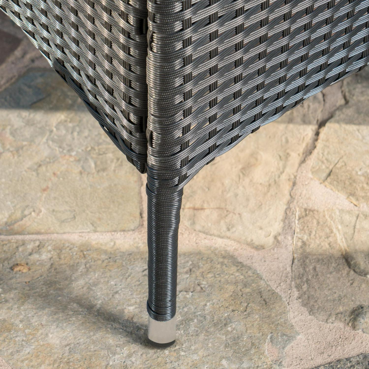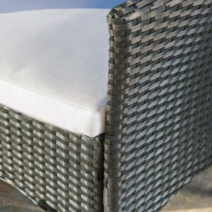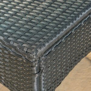 This wicker loveseat and table are a great addition to any patio. The water resistant cushions in conjunction with the wicker make both the loveseat and table ideal for an outdoor setting. The slight curve of the arms adds the perfect amount of flair, giving you a stylish and comfortable loveseat and table for your patio.