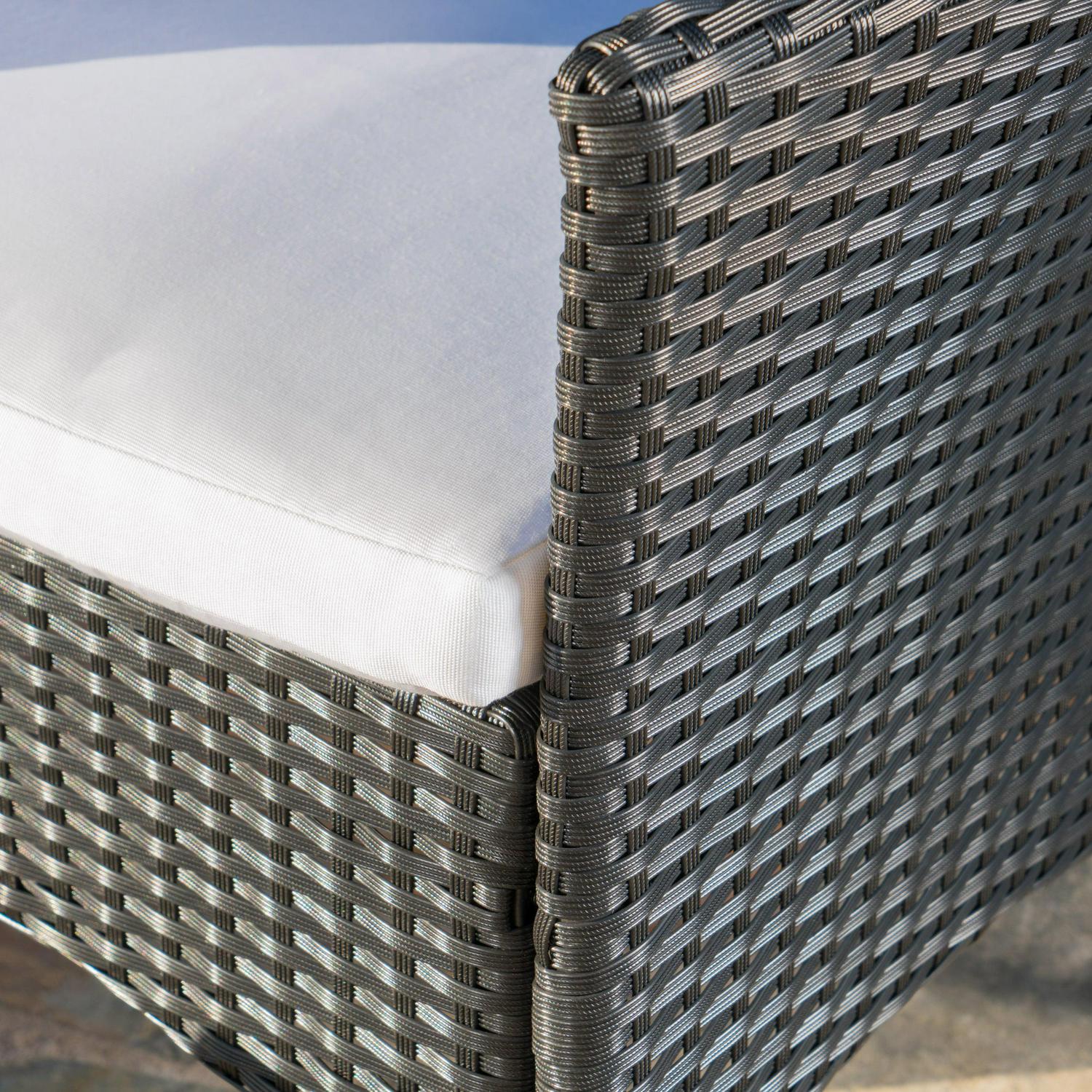 Camilo Outdoor Wicker Loveseat and Coffee Table Set with Cushions, Black, White