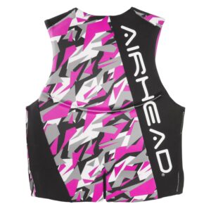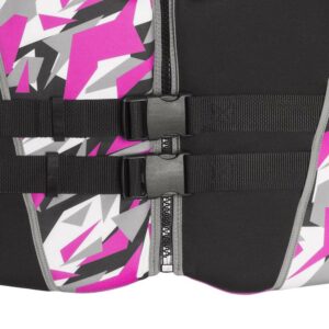 USCG Approved. Womens closed sided vest with camo design. Segmented hinges made with NeoLite and Kwik Dry. Zippered closure and 2 hidden 1.5″ Straps.