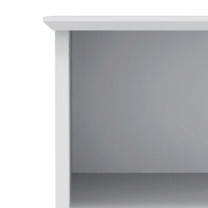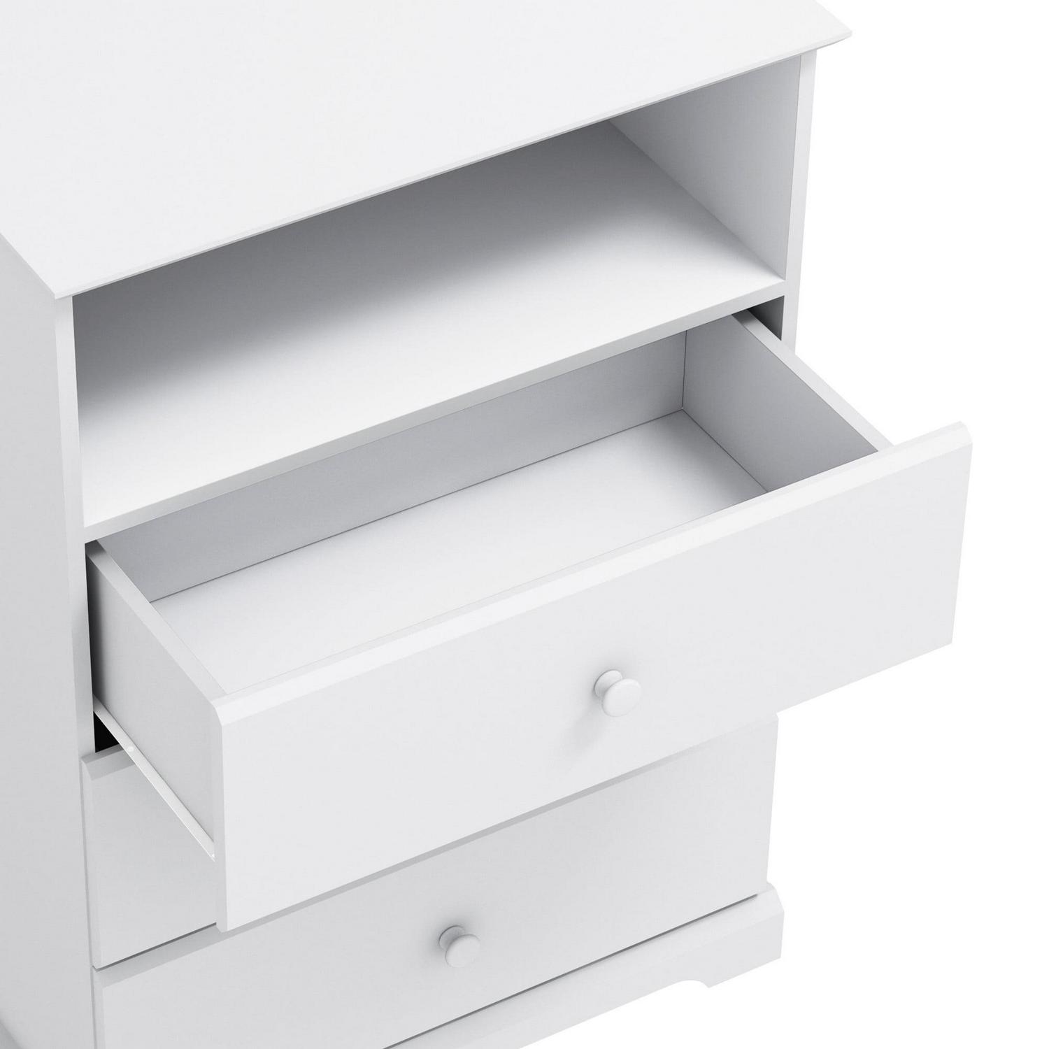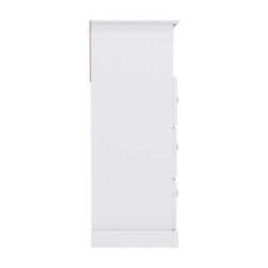 Teach your little ones that some things you display and some things you put away with this Wooden Storage Chest in clean white finish. When it’s time for a quick pick up of their bedroom or play area, the drawers offer room to hide away messes from visitors while the open storage space gives a special place to showcase favorite dolls, trucks, craft projects, and treasures. At just over three feet tall, it’s the perfect height for kids to do the “display or hide it” job themselves. Plus, the transitional design means that, unlike their shoes and clothes, this will last as they grow. Assembly required.