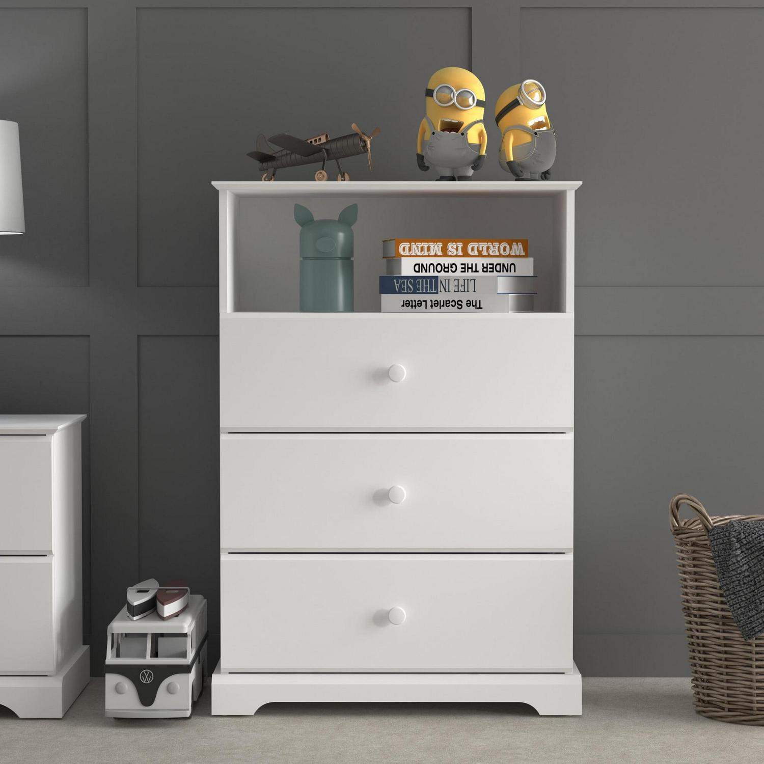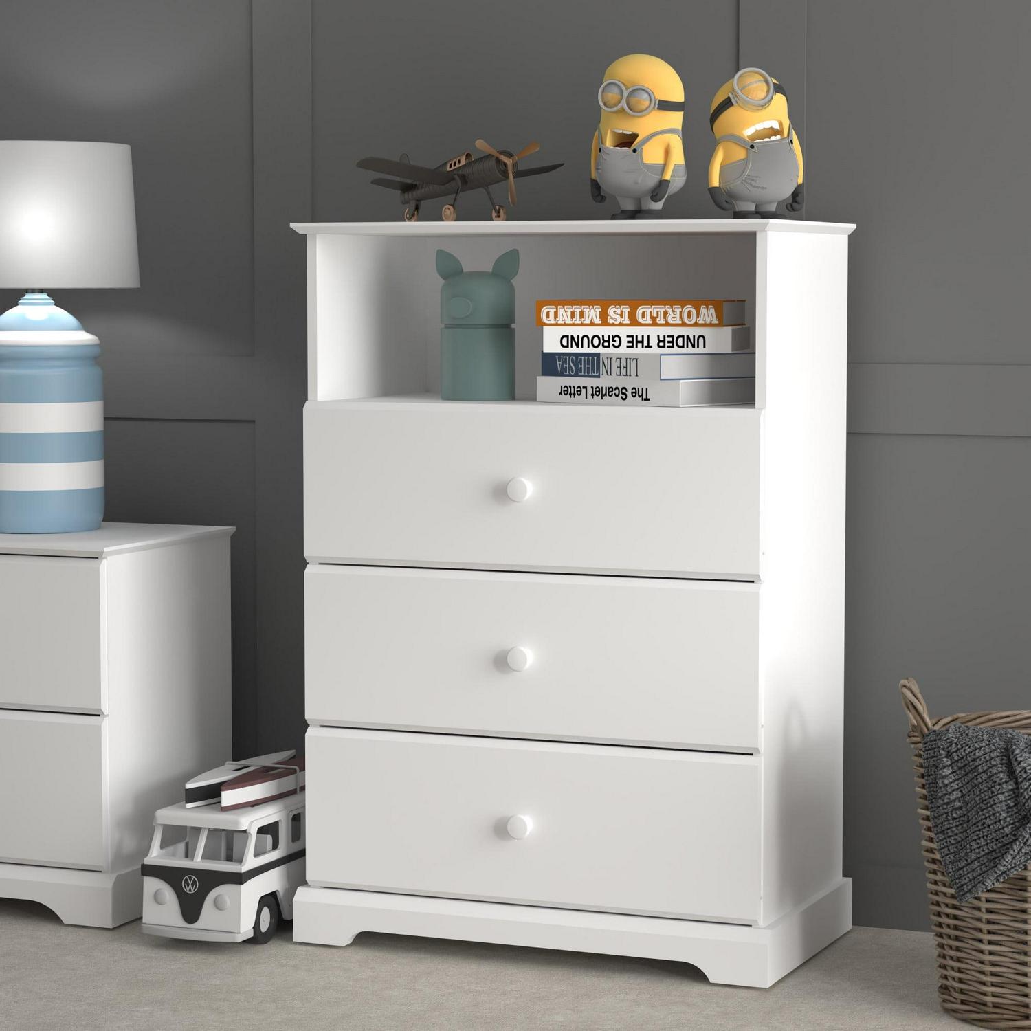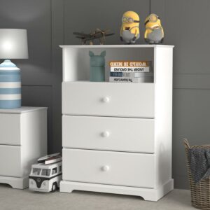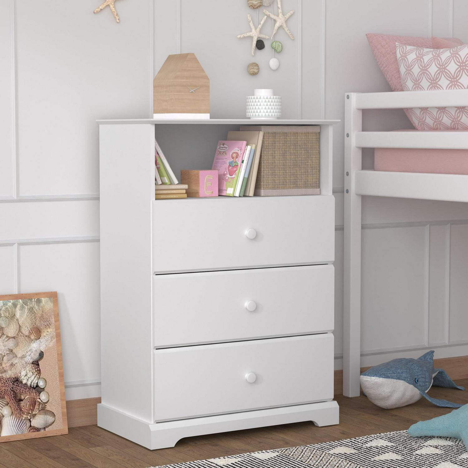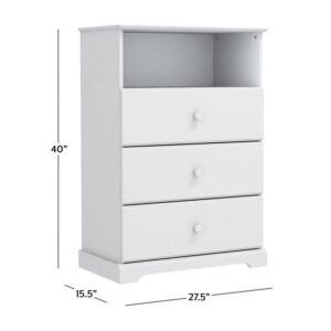 Campbell Wood 3-Drawer Kids Dresser with Storage Shelf, White