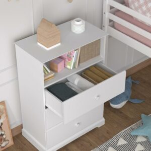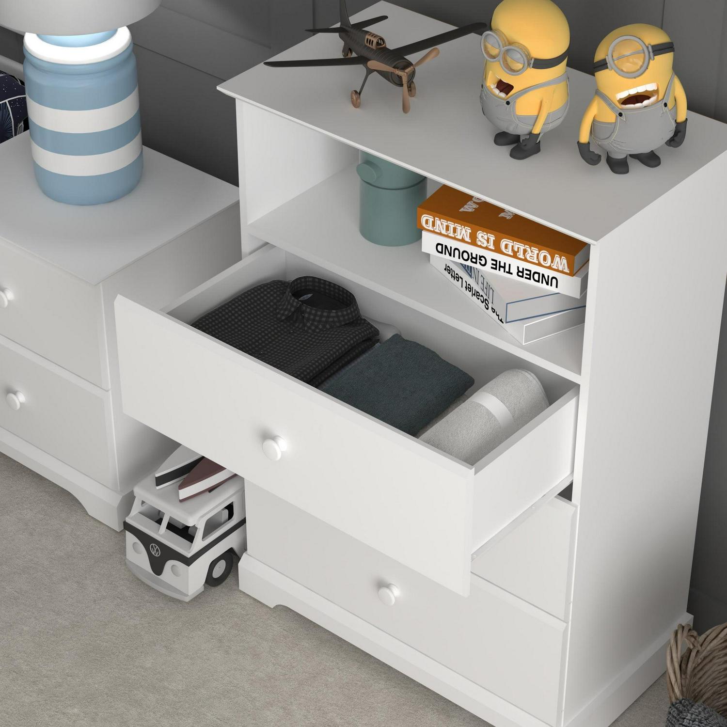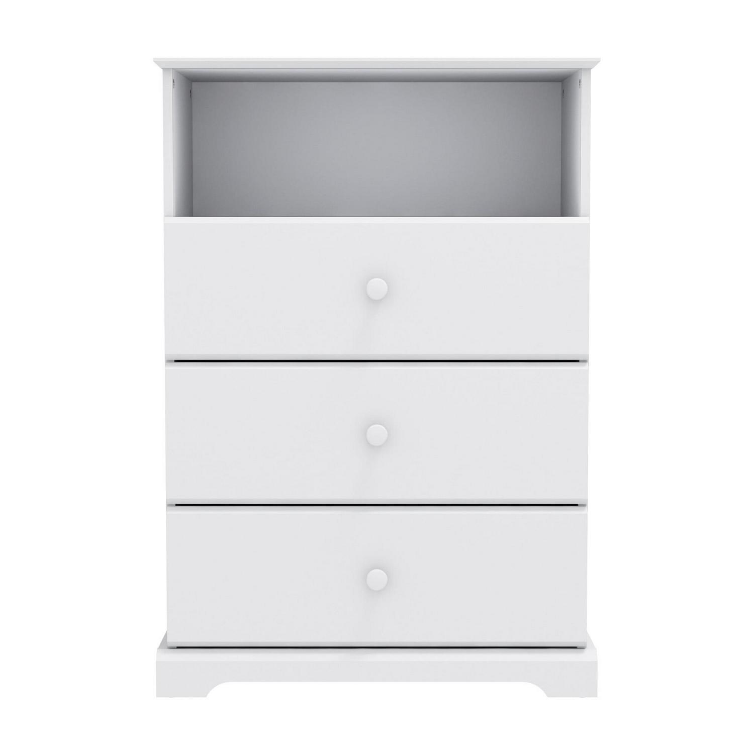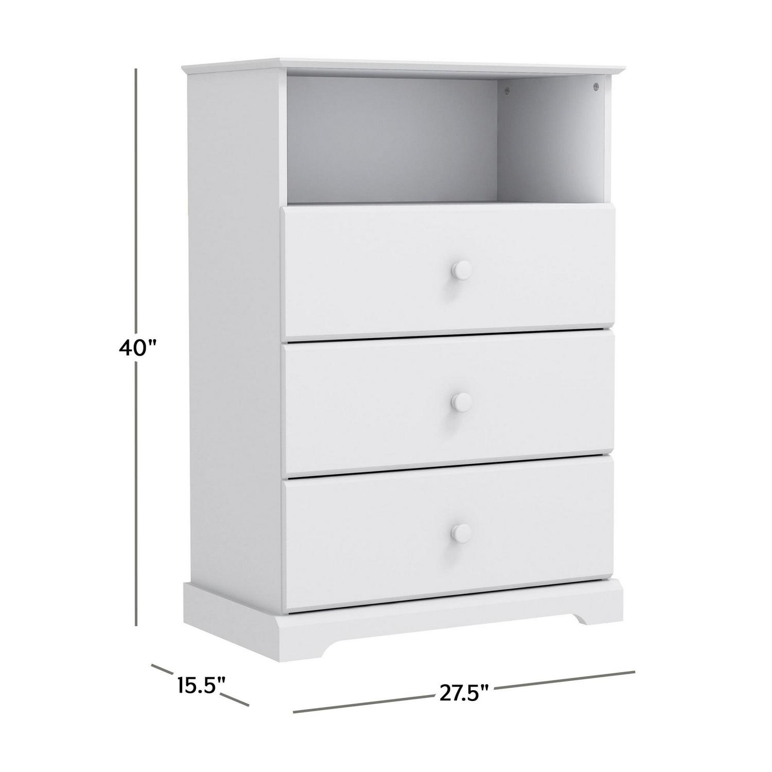 Campbell Wood 3-Drawer Kids Dresser with Storage Shelf, White