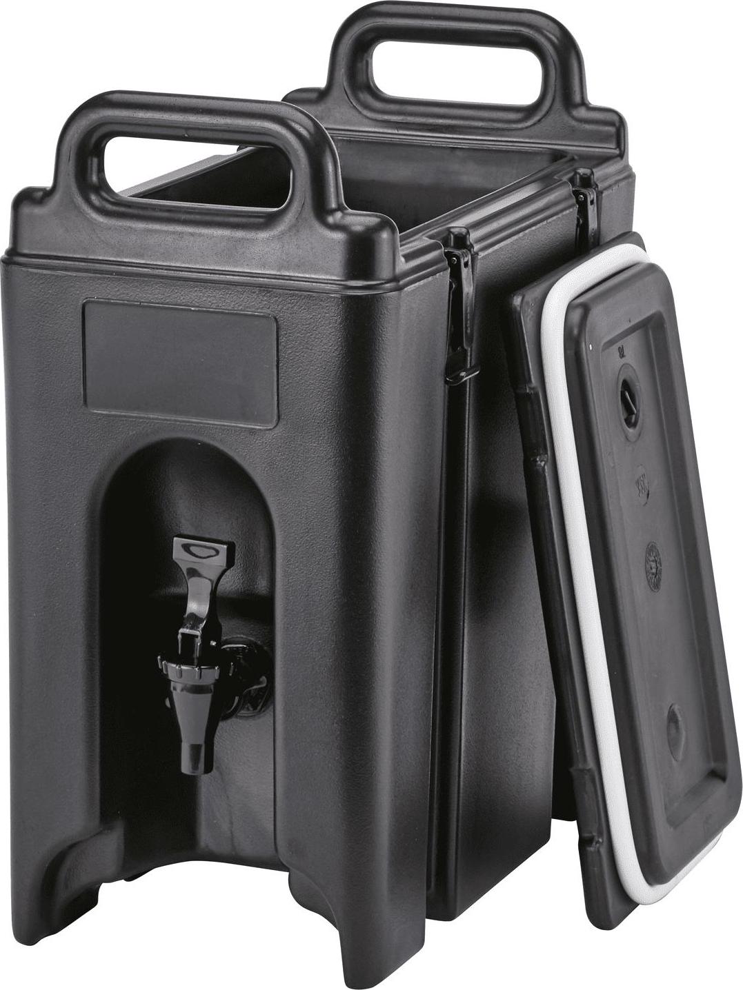 The standard for beverage service, this heavy duty insulated server is a work horse that will keep your drinks safely chilled or piping hot for many hours! Ideal for catering and outdoor events, the Camtainer protects contents and food safe temperatures against outdoor heat and cold. Featuring rust-proof plastic latches that secure lids tight and a vent cap to equalize pressure. This provides easy, mess-free access for refills and soup service. A recessed faucet eliminates drips and ensures even dispensing, with continuous and individual pouring positions. The Camtainer is the dedicated beverage and soup server your event deserves, with uncompromising Cambro durability.