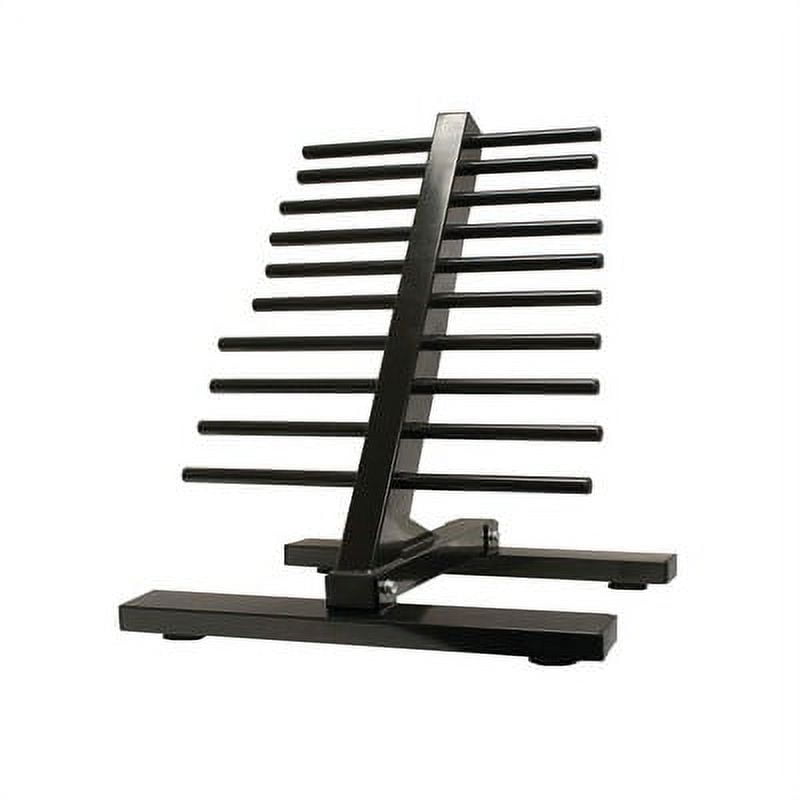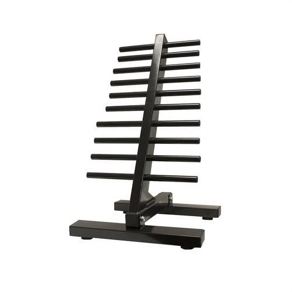 Professional free weight floor rack brings added convenience for your upper body workouts Holds up to a full set of 20 dumbbells to accommodate varying free weights you’ll use commonly for workouts 1, 2, 3, 4, 5, 6, 7, 8, 9, and 10-pound weight pairs made for toning muscles or physical therapy fit great on the 5 tiers Storing exercise weights off the ground and out of the way to save precious workout space Slanted rack makes each set of weights equally easy to access and to utilize Material: Iron Weight: 25 pounds Dimensions (L x W x H): 20 x 20 x 28 inches