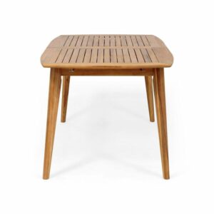 Candance Outdoor Acacia Wood Expandable Dining Table Become the master of hosting unforgettable outdoor get-togethers with our gorgeous and practical dining table. This table is extremely convenient with its expandable feature, allowing you to accommodate unexpected company. With ample space for all of your guests, this table is the perfect addition to any outdoor space. Made with smooth acacia wood, this outstanding piece features a classic slatted tabletop that is supported by sturdy tapered legs. From marvelous evening dinners to exciting morning brunches, our table will have you covered.
