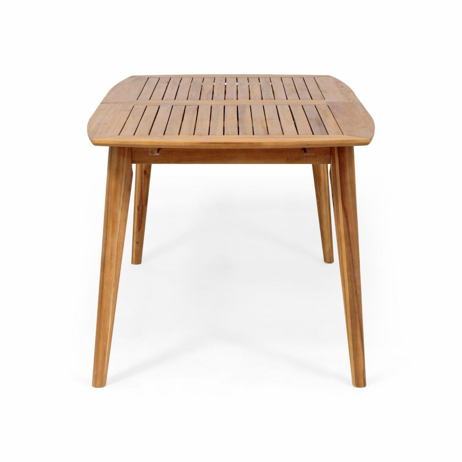 – This table is extremely convenient with its expandable feature, allowing you to accommodate unexpected company.|With ample space for all of your guests, this table is the perfect addition to any outdoor space.|Made with smooth acacia wood, this outstanding piece features a classic slatted tabletop that is supported by sturdy tapered legs.
