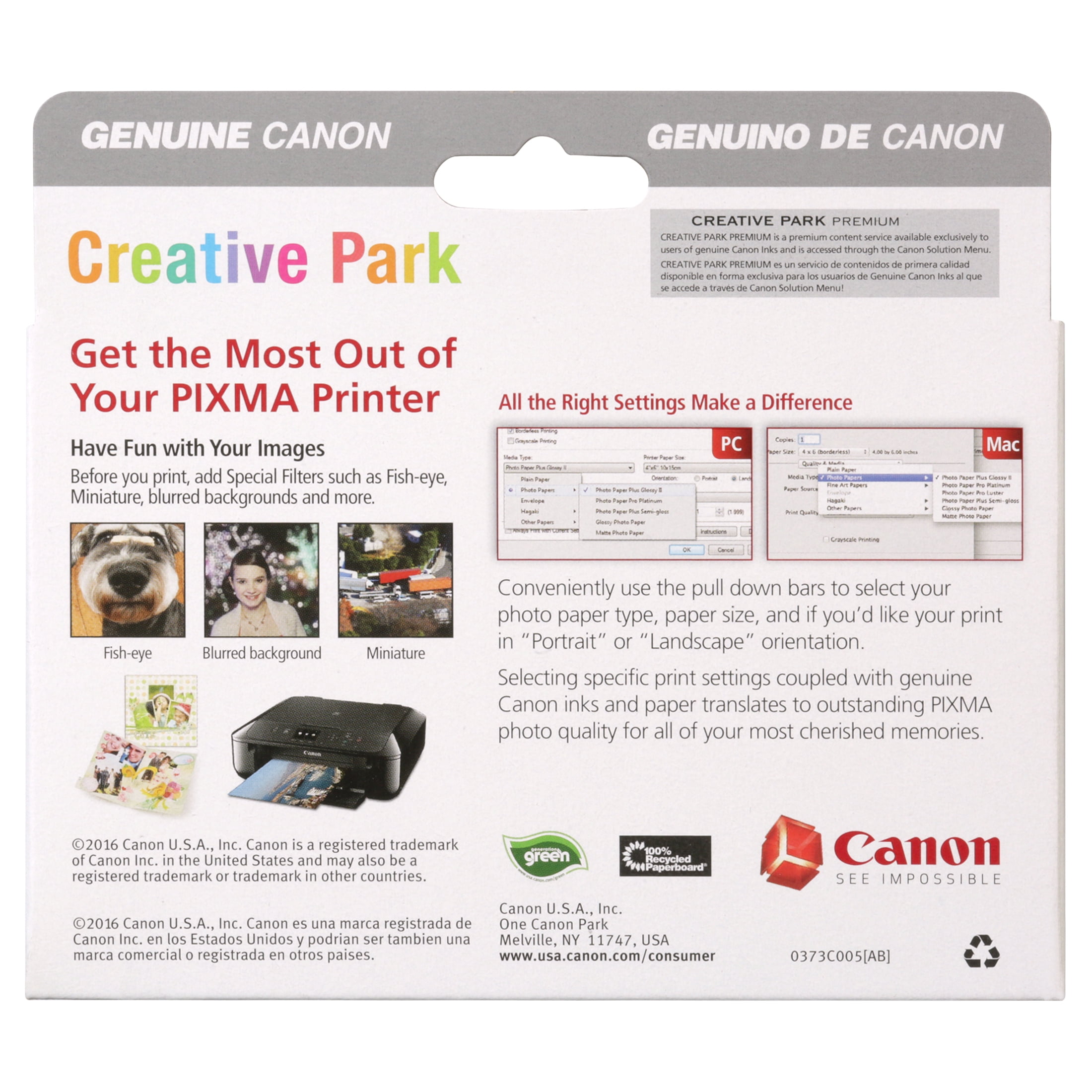Save on ink and paper with Canon Combo Packs. Print beautiful photos with the glossy photo paper and inks. PP-201 is a five-star glossy photo paper for ChromaLife 100 results.