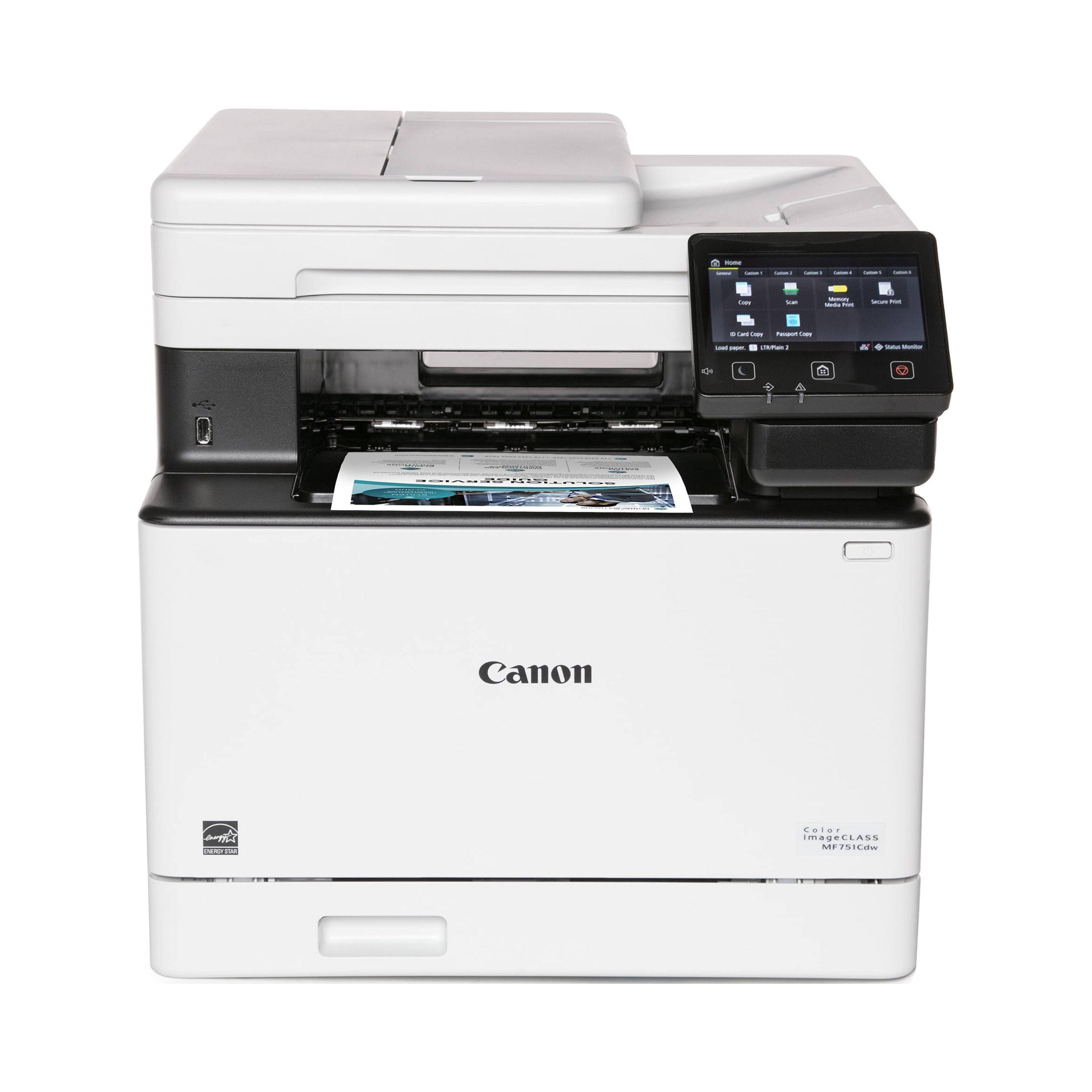 Designed for small and medium-size businesses, the imageCLASS MF751Cdw model balances speedy performance and minimal maintenance. The MF751Cdw is easy to set up and offers media versatility to print on a variety of media types and sizes, including envelopes, banners and more. The customizable, 5″ color touchscreen delivers an intuitive user experience.Produce crisp, colorful documents with fast print speeds of up to 35 pages per minute1 using high quality Canon Genuine Toner 069 / 069 H. Use Poster Artist Online to create professional-posters, banners and signage.The MF751Cdw offers and expandable paper capacity of up to 850 sheets, with a plain paper capacity of up to 250 sheets, 50-sheet multipurpose tray, and optional cassette PF-K1 which holds up to 550 sheets. The MF751Cdw has a 50-sheet simplex automatic document feeder.Easily connect and print through high-speed USB, Ethernet, or wirelessly from computers or mobile devices. Print using a variety of mobile apps, including the Canon PRINT Business app2 using your compatible mobile device.The MF751Cdw comes with a 3-year limited warranty3and is backed by Canon’s Service and Support network.