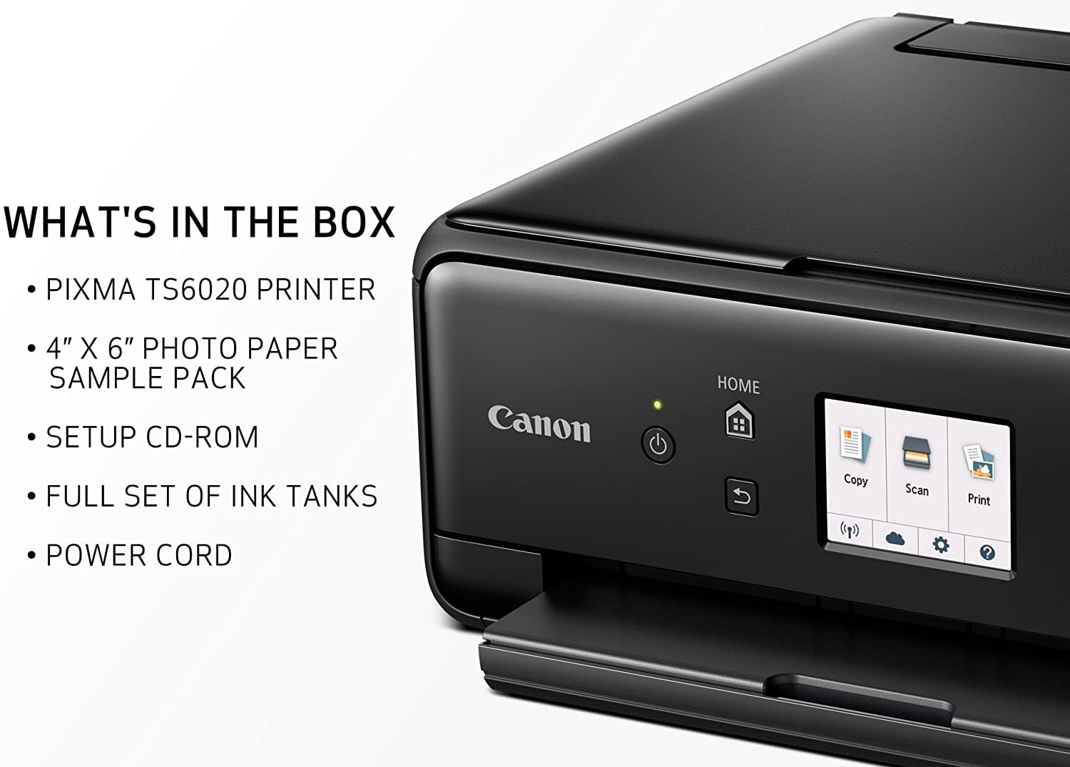 Stunning Print quality. Inspire your creativity and Print beautiful photographs and documents with the 5 individual ink system. Enhanced connectivity. Enjoy the simplicity of connecting your smartphone, tablet and all your favorite devices with ease. Print hassle free – whether from the cloud, on social media or on the go. Stylish & compact. The PIXMA TS6020 Wireless printer is the all-in-one that fits perfectly anywhere in the home, is simple to use, and delivers outstanding quality results every time.