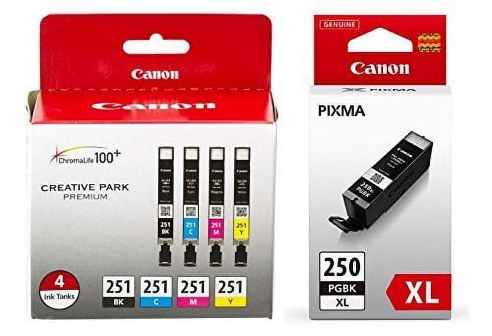 The PGI-250 Pigment Black ink produces crisp, sharp black text for all your documents, while the CLI-251 Color inks provide vibrant colors for all your photos. Delivers improved color, a wider color gamut and better color fastness.