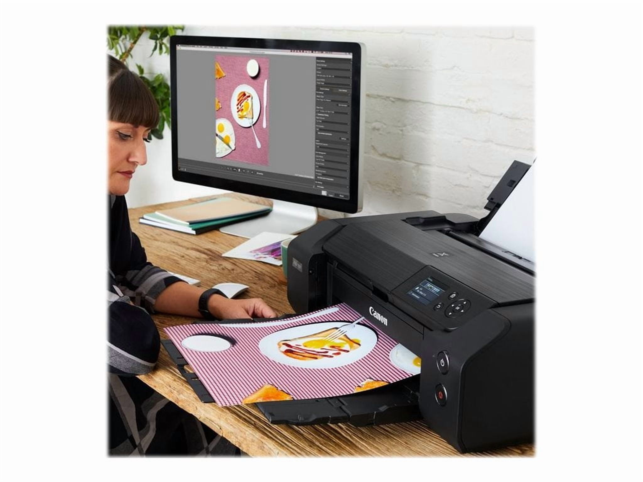 8 Color dye-based ink system produces vibrant, high-quality prints Compact Size Save space in your home or studio with a Compact Design Borderless Printing from 3.5″ x 3.5″ up to 13″ x 19″ High-Speed Printing – bordered A3+ print in just 90 seconds or bordered 8x10in print in 53 seconds Easily check ink levels, printer status, and other settings with the 3.0″ Color LCD Monitor Print through WI-FI or a networked Ethernet connection With Panorama Printing print up to a custom size of 13″ x 39″ Enjoy a seamless printing workflow with Professional Print & Layout Software