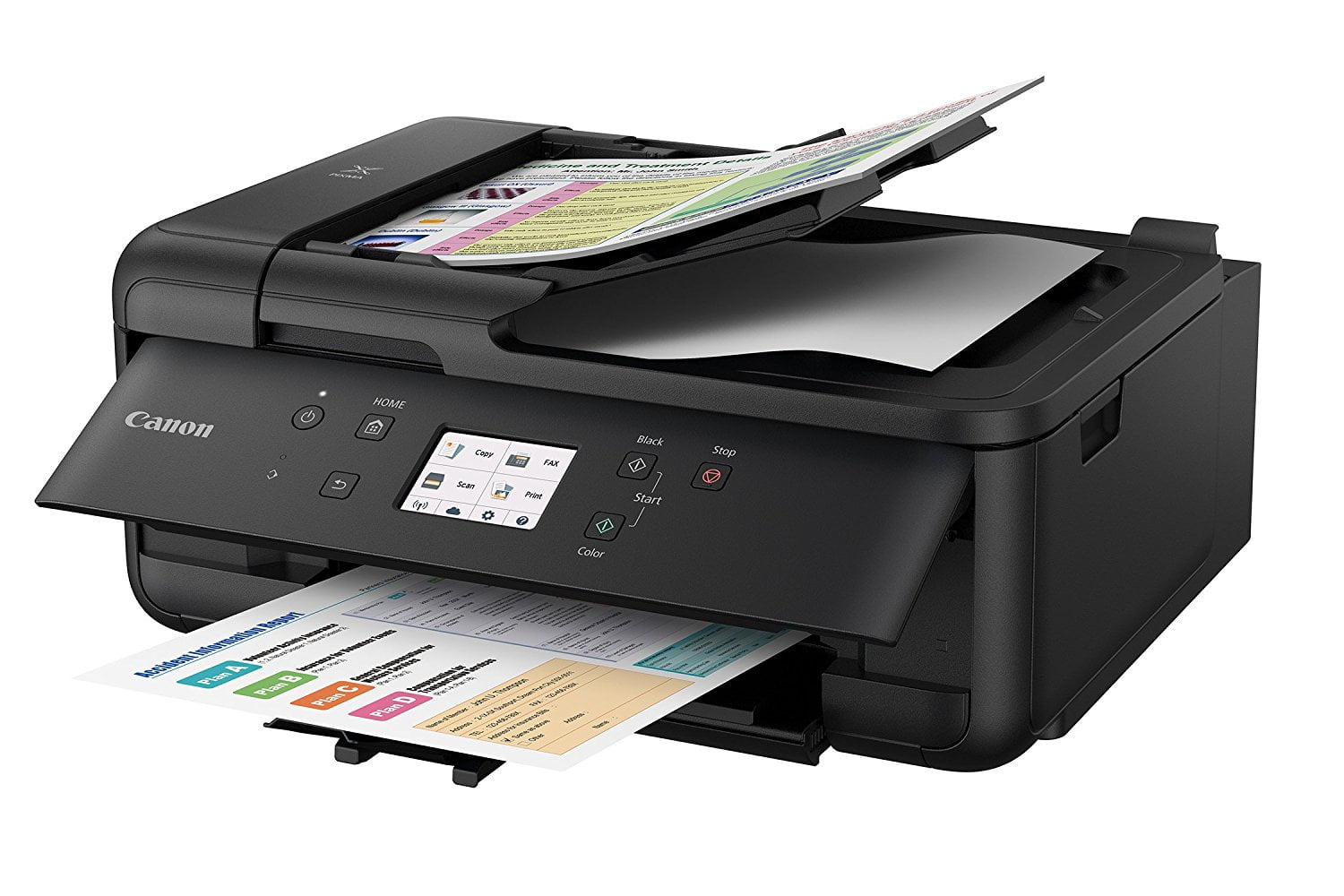 THE PERFECT HOME OFFICE PRINTER THAT’S JUST THE RIGHT SIZE. A home office printer should make getting work done easier and the PIXMA TR7520 does just that. It’s made to handle large workloads efficiently from printing, scanning and faxing documents quickly. It’s ready to print sharp text documents and great looking photos thanks to a quick 5-Color Individual Ink System, and has both a front paper cassette and rear paper tray. Not only is the PIXMA TR7520 quick it’s also connected, you can easily print from all your devices through Wi-Fi, Bluetooth, or even the Cloud3 with the use of the 3.0″ LCD Touchscreen. With the PIXMA TR7520 you’ll see why it’s the perfect home office printer that’s just the right size.