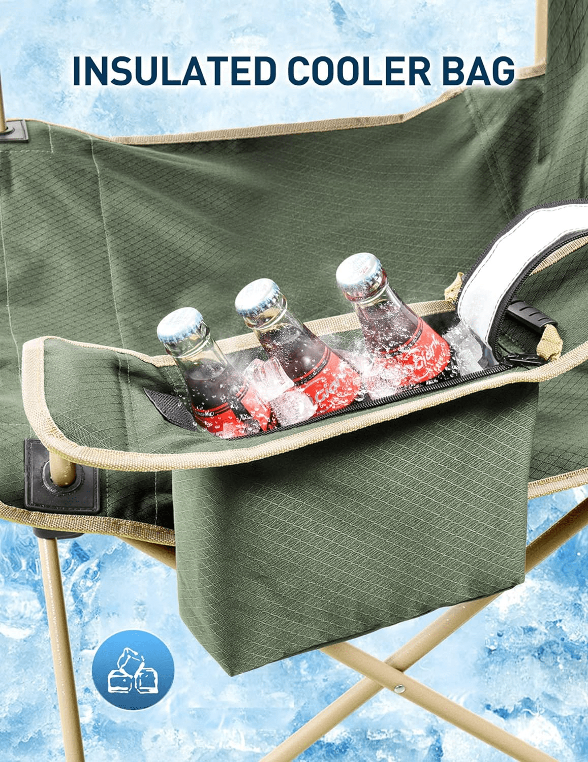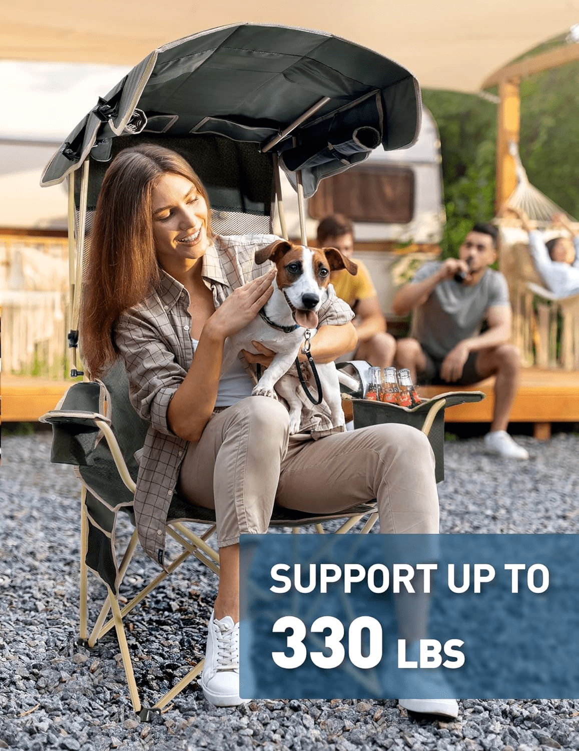 Canopy Camping Chairs with Cooler Pouch, Foldable Beach Chair for Adults with Retractable Shade, Summer Camping Chairs with Cup Holder & Side Pocket for Lawn/Tailgates/Sports- Support 330LBS – Green