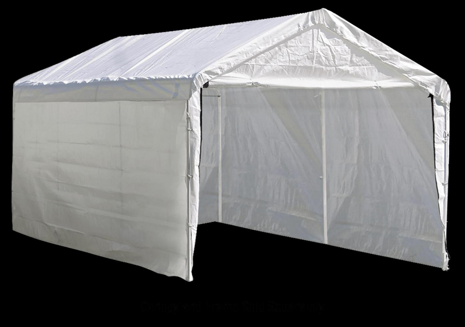 The ShelterLogic MaxAP 10 ft. x 20 ft. Canopy Enclosure Kit delivers more options, and more versatility to your canopy. Quickly convert your 10 ft. x 20 ft. , 2 in. diameter fixed leg canopy to an enclosed shelter in minutes. Attaches to the frame quickly and easily with bungee fasteners. Create a great low cost seasonal storage solution in minutes. Canopy frame and cover sold separately.ENCLOSURE KIT ONLY – CANOPY FRAME AND COVER SOLD SEPARATELY. Fits all 10 x 20 ft. SuperMax 2 in. diameter canopies.. Heat sealed seams not stitched for a stronger bond. 100% water resistant. Constructed of ripstop woven polyethylene fabric. 50+ UPF Sun Protection blocking 98% of harmful UV Rays. Added UV protection, fade blockers, anti- aging, anti-yellowing and anti-microbial agents. UV protection treated inside, outside and in between. Quick and easy set-up attached to canopy frame in minutes with bungee fasteners, reuse your existing bungees or reorder.