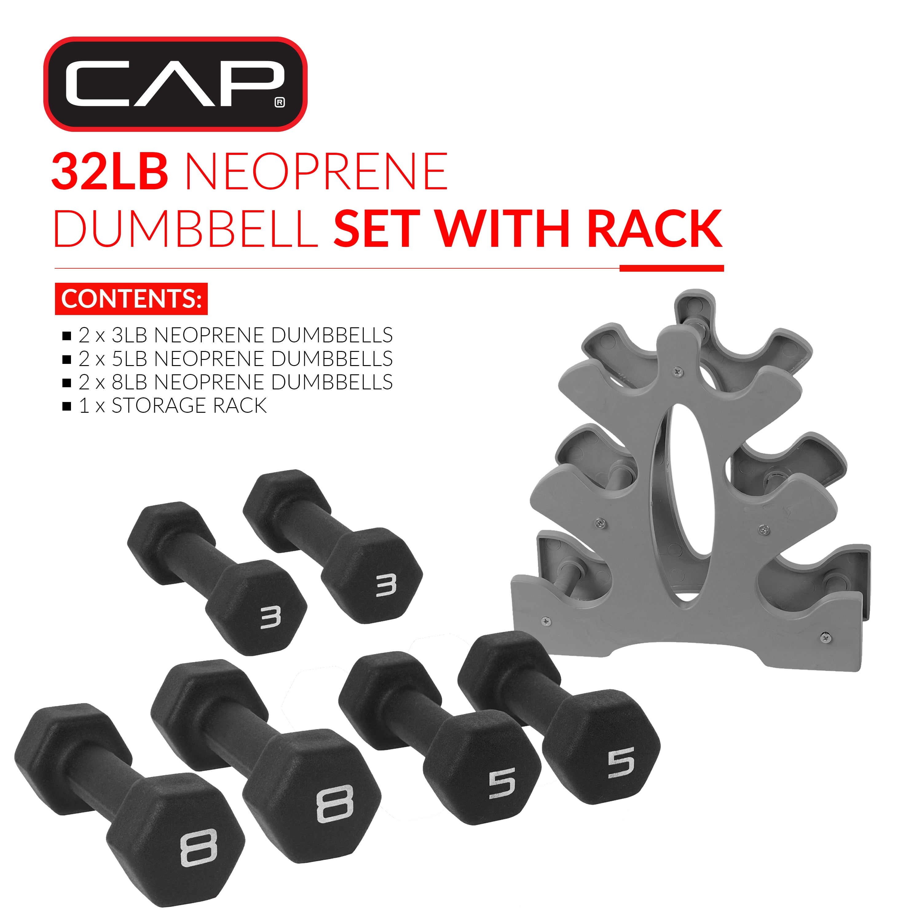 CAP Barbell 32 lb Neoprene Dumbbell Set with Rack, Black