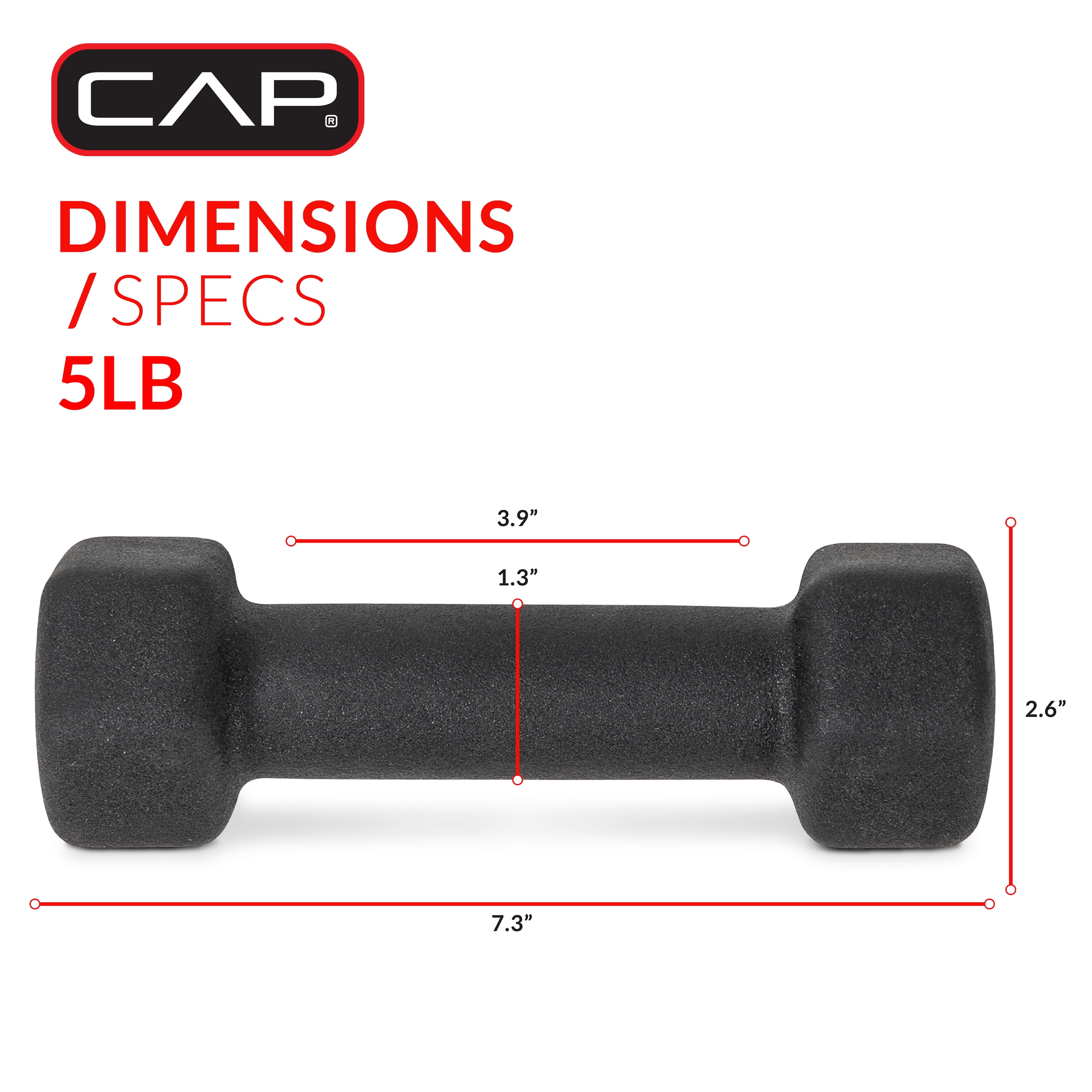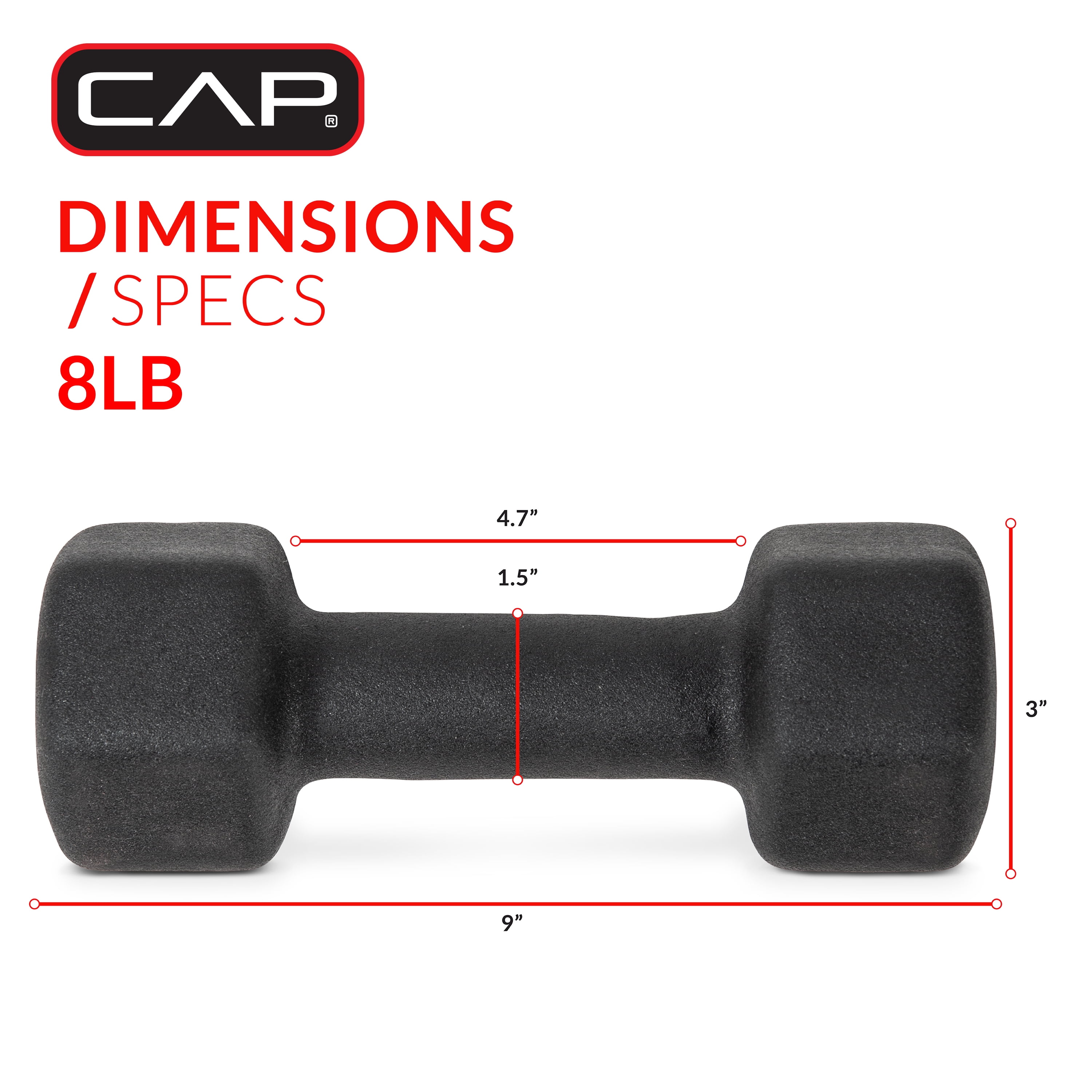 The black CAP 32lb Neoprene Dumbbell Set with Rack is a compact set that can fit about anywhere in your office or home and provides an easy and convenient way to build your strength. It is equipped with three pairs of dumbbells of three, five and eight pounds. They have a comfortable shape for easy gripping and have hexagonal heads that help to ensure the dumbbells stay in place and do not roll around. The rack in this CAP 32 lb Neoprene Dumbbell Set is compact and stores equipment conveniently out of the way when not in use.