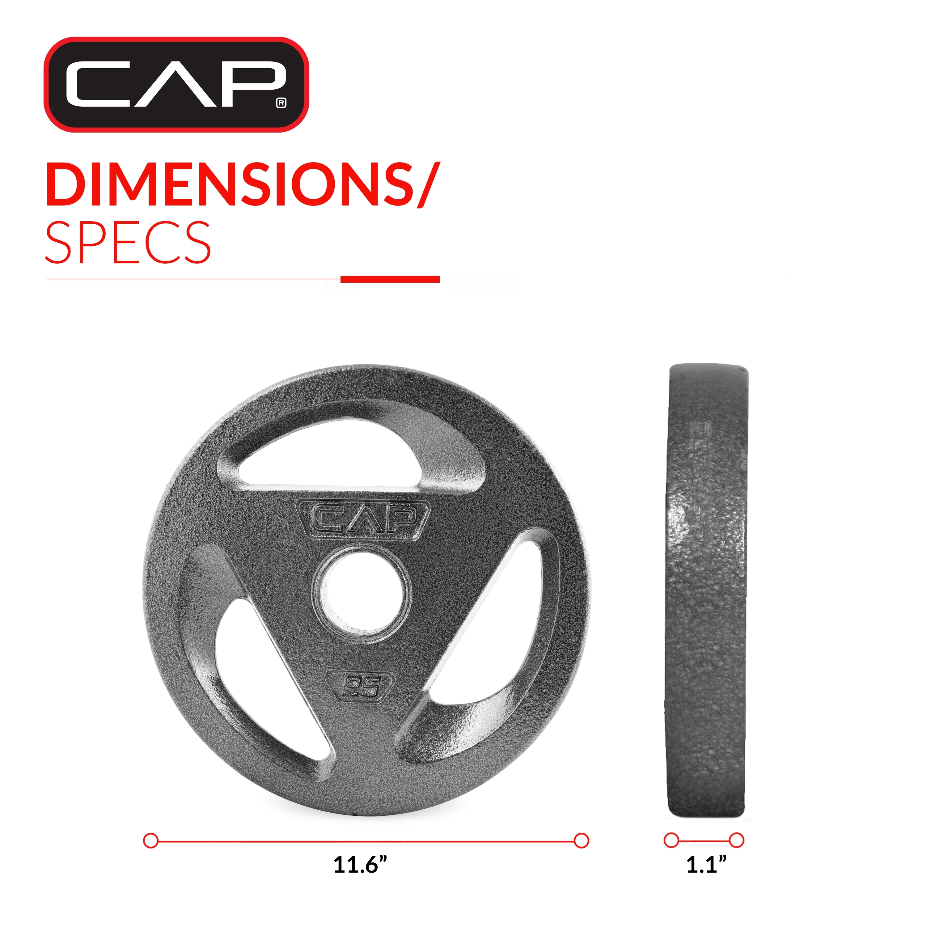 CAP Barbell 50lb Olympic Grip Plate Weight Set, Pair of 25 lb Plates: This weight plate set include TWO 25-pounds grip plates (Fits on 2″ bars) • Helps to build a stronger upper body • Grip plate design provides easy handling, allowing for a more extensive and controlled workout • Made with a durable and long-lasting cast-iron construction • Coated in a baked enamel finish for added protection • Great for strength training routines, HIIT workouts and to improve grip strength • Barbell is NOT included with this grip plate set • Includes a 30-day limited manufacturer warranty