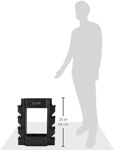 CAP Dumbbell and Kettle Bell Storage Rack: Constructed with solid steel for a sturdy, long-lasting storage rack Includes two trays for additional storage of kettlebells, medicine balls, and/or other exercise equipment Maximizes floor space while keeping equipment organized and on hand Steel dumbbell rack is outstanding for workout rooms, man caves, garages, and more Rubber inserts protect equipment and rack from scratches and damage Dumbbells, kettlebells and other equipment are not included Assembled rack dimensions are 20.47″ length x 9.45″ width x 23.62″ height