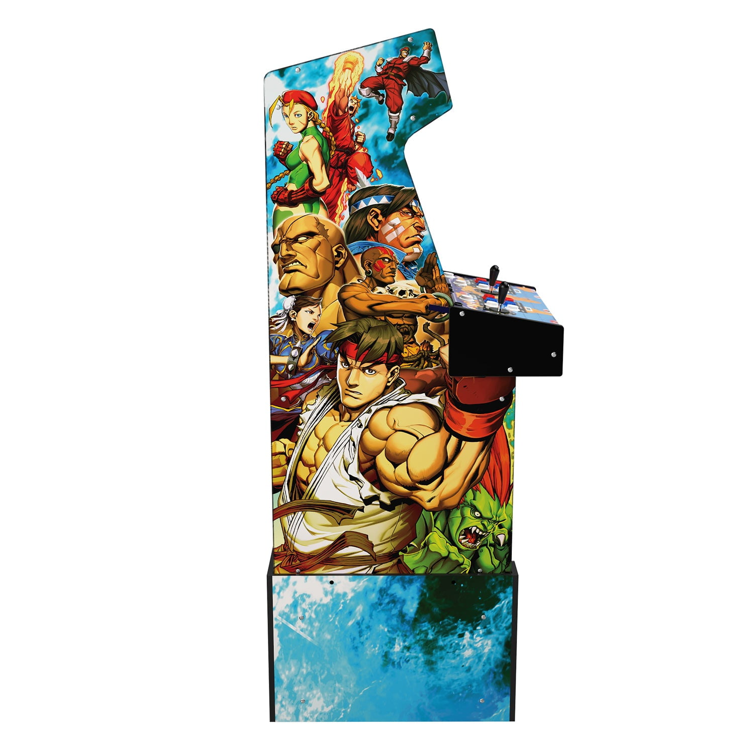 For the first time ever, Arcade1Up introduces remote WiFi LIVE online play in a Capcom Legacy home arcade game machine! STREET FIGHTER II™ was the first one-on-one fighting game to feature a variety of characters with their own unique martial arts combinations, propelling it to become an instant arcade phenomenon, and one of the most influential arcade games of all time. Now, over three decades later (and as iconic as ever), Arcade1Up’s Capcom Legacy Arcade Game Shinku Hadoken Edition features a red-themed cabinet aesthetic inspired by the mystical Dhalsim’s fiery attack…and this Arcade1Up game machine is THE way to bring that fierce fightin’ ‘90s style home! Easily assembled, Arcade1Up game machines provide authentic (and yes, way nostalgic) arcade experiences for your family game room, fan cave, or a welcome distraction in the office. They play great, look great, and are instant conversation pieces. Let’s start with the marquee game, STREET FIGHTER II TURBO: HYPER FIGHTING. An unreal, amped-up iteration of the title that absolutely revolutionized the fighting game genre! From Ryu to Ken to Chun-Li and all of your other favorite combatants, perfect your combos, and pile up those victories. Also included are STREET FIGHTER II™: CHAMPION EDITION and STREET FIGHTER II TURBO. All at your fingertips, all just like how you remember them! And that’s just the start of the 14 game line-up packed inside this gorgeous cabinet, that includes a matching riser and light-up marquee. Yep…14 titles! KING OF DRAGONS™, STREET FIGHTER™, PROGEAR™, BATTLE CIRCUIT™, SUPER PUZZLE FIGHTER™, SATURDAY NIGHT SLAM MASTERS™, CAPCOM SPORTS CLUB™, FINAL FIGHT™, GIGA WING™, CAPTAIN COMMANDO™, ARMORED WARRIORS™, are also ALL included. Switch it up to any included game at will, with the easy to navigate on-screen menus. Oh, and in addition to the WiFi LIVE play, see how your high scores measure up with online WiFi leaderboards! Iconic arcade games. Pop culture imagery that has stood the test of time. Nostalgia that transcends generations. Arcade1Up calls this the “Legacy Edition” for a reason…make that many reasons!
