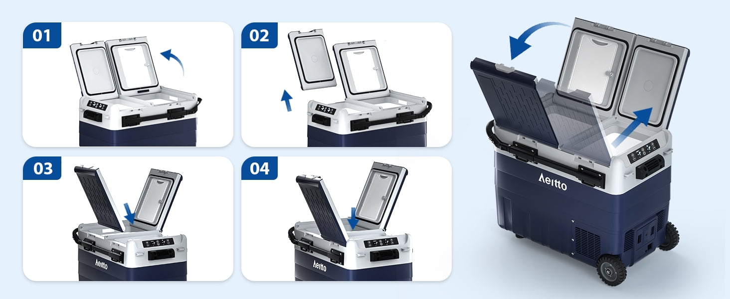 ❄️【𝑫𝒖𝒂𝒍 𝒁𝒐𝒏𝒆 𝑻𝒆𝒎𝒑 𝑪𝒐𝒏𝒕𝒓𝒐𝒍】The Aeitto 12V Car Refrigerator features dual-zone independent temperature control, it can be used as both a freezer and a cooler, or one as a freezer and the other as a cooler. With a cooling range of -4°F to 68°F (-20°C to 20°C), it can fulfill all your freezing and chilling needs. The dual-zone feature provides optimal storage flexibility, ensuring that different types of food, beverages and pharmaceuticals are kept at the ideal temperature. ⚡【𝑴𝒖𝒍𝒕𝒊𝒑𝒍𝒆 𝑷𝒐𝒘𝒆𝒓 𝑪𝒐𝒏𝒏𝒆𝒄𝒕𝒊𝒐𝒏】This 12V cooler has a DC12V/24V power cord and an AC/DC adapter. It supports vehicle power connection and can be directly plugged into the vehicle’s cigarette lighter socket for long-distance driving trips or camping. It also can be connected to an external power source such as a household outlet via a home power adapter, making it convenient for you to pre-cool or refrigerate food at home. (Note: Product accessories not equipped with outdoor power connector) ✅【𝑬𝒏𝒆𝒓𝒈𝒚 𝑺𝒂𝒗𝒊𝒏𝒈 & 𝑩𝒂𝒕𝒕𝒆𝒓𝒚 𝑷𝒓𝒐𝒕𝒆𝒄𝒕𝒊𝒐𝒏】This car refrigerator features MAX and ECO modes and three battery protection levels. MAX mode is able to cool quickly to meet your needs for cooling drinks and food in the hot summer and the ECO mode maintains the ideal cold temperature with lower energy consumption. Battery protection function with three levels of low, medium and high prevents the car from not starting due to low battery level, ensuring the safety and longevity of the car’s battery. 💪🏼【𝑼𝒔𝒆𝒓-𝑭𝒓𝒊𝒆𝒏𝒅𝒍𝒚 𝑫𝒆𝒔𝒊𝒈𝒏】The freezer is equipped with retractable tie rods, sturdy wheels, and the handles to make it easy to move around at the campground or on the beach. The built-in utility cutting board to handle ingredients conveniently at all times. Built-in LED lighting improves visibility. The USB charging port for charging phones or other electronic devices. The removable refrigerator door makes it easy to clean. You can also change the opening method according to your needs or habit. 🚙【𝑳𝒐𝒘 𝑵𝒐𝒊𝒔𝒆 𝒂𝒏𝒅 30°𝑨𝒏𝒕𝒊-𝑺𝒉𝒂𝒌𝒊𝒏𝒈】This car refrigerator offers the ultimate in comfort for your journey with its superior performance and design. It utilizes low-noise technology and operates at less than 45 dB, making its presence virtually imperceptible while you are driving or resting. In addition, the refrigerator is equipped with a 30-degree shockproof function, so it can work stably on rough roads no matter driving a truck, RV, VAN, SUV, etc., to ensure the safe storage of food and drinks. 💖【𝑨𝒆𝒊𝒕𝒕𝒐 𝑾𝒂𝒓𝒓𝒂𝒏𝒕𝒚 𝑺𝒆𝒓𝒗𝒊𝒄𝒆】We provide 12 months warranty services and 7*24 hours online consultation services for this car refrigerator, please feel free to contact us if products have any problems. We promise to solve the problem for you. Aeitto specializes in providing buyers with high-quality small appliance products and the best user experiences.
