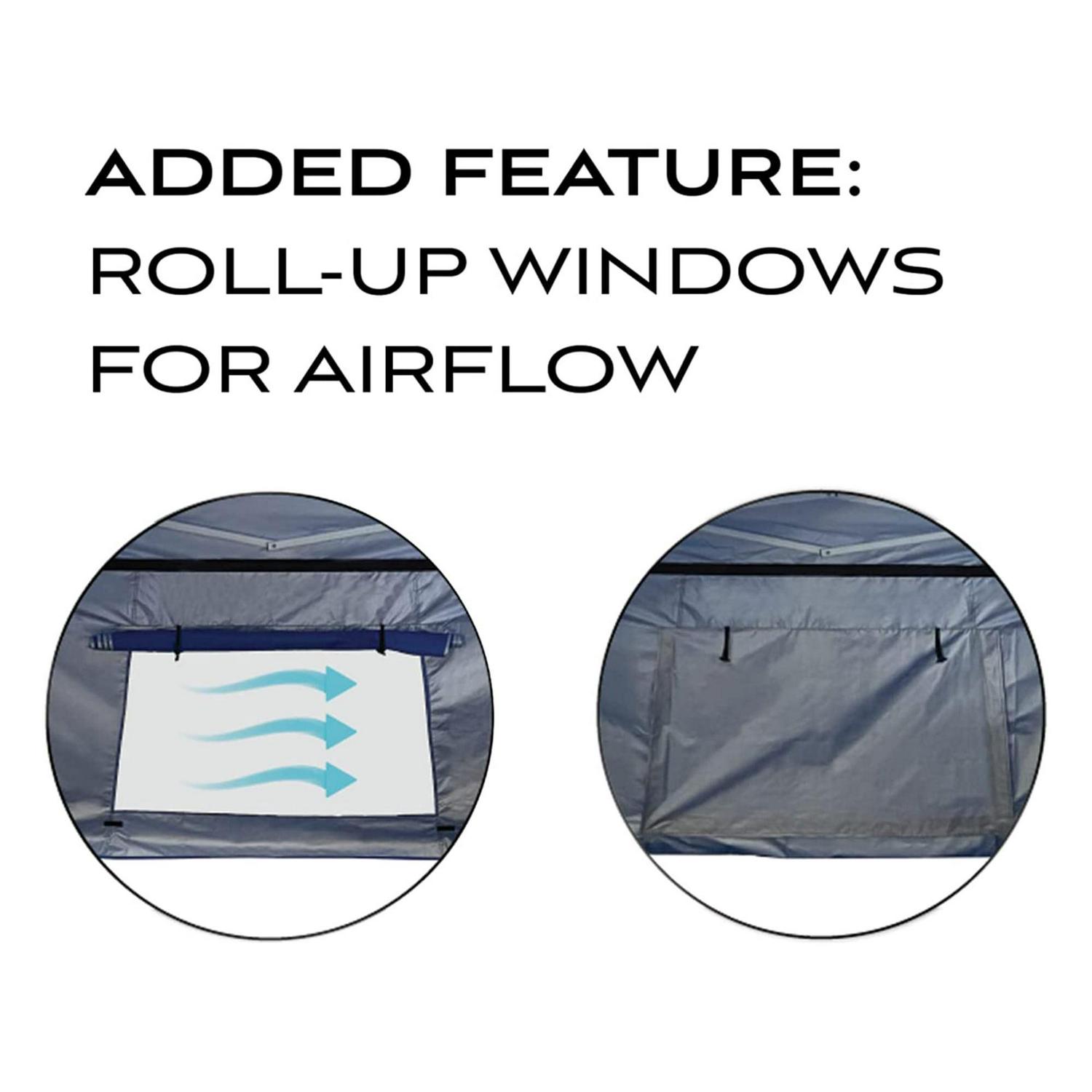 – Removable sidewalls with roll-up windows allow air to flow through for a fresh and breathable living area