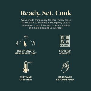 STOVETOP AGNOSTIC & OVEN SAFE: This set of pots and pans is made for any kitchen and cooktop. They can be used effectively on induction, gas, and electric stovetops, and are oven-safe up to 550ºF, making them great for bread baking and roasts.