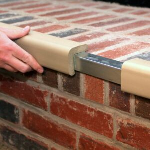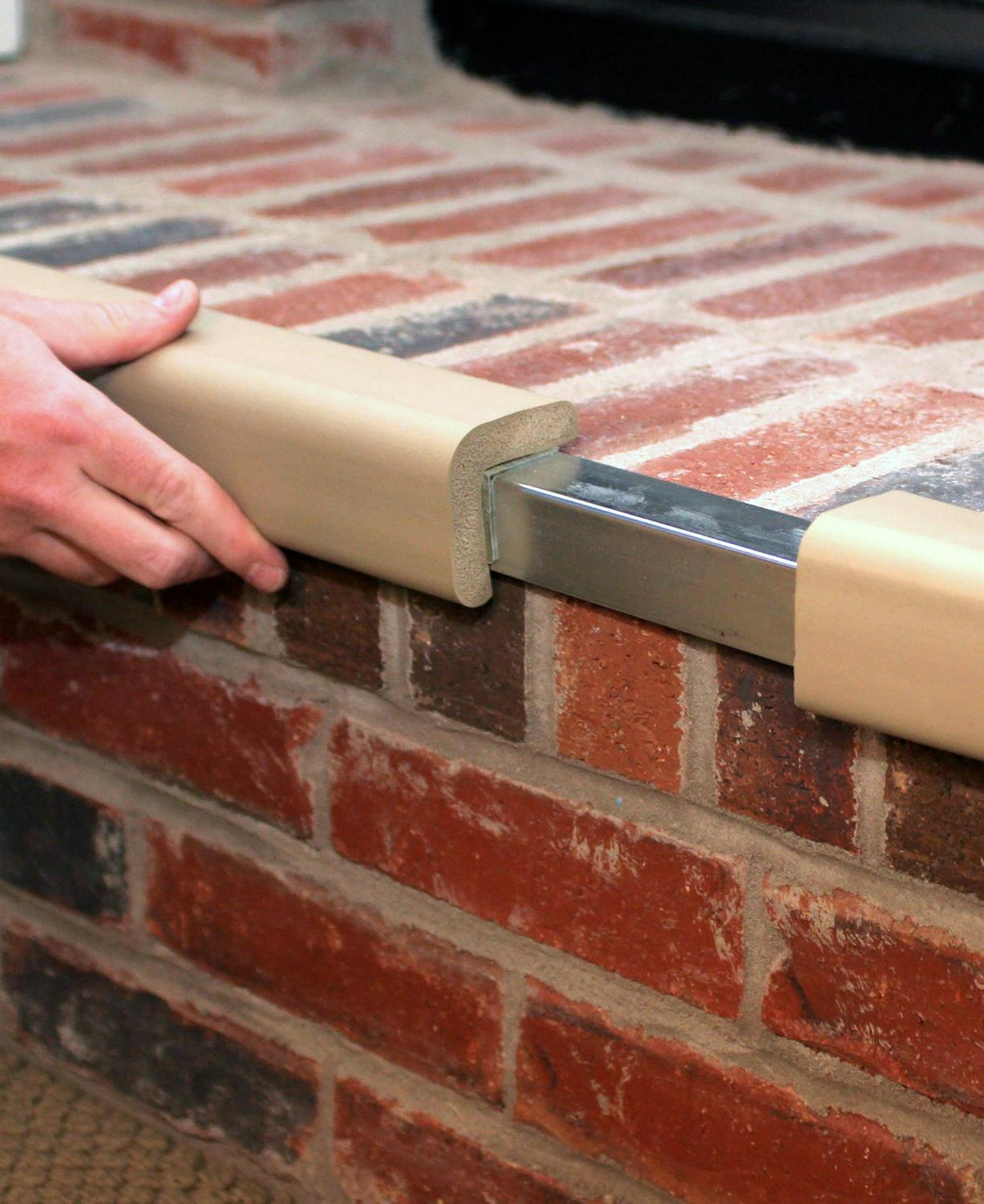 The only metal-backed fireplace hearth cushion on the market, the Cardinal Gates Pressure Fit Fireplace Cushion (Model KE) clamps onto your fireplace without the use of adhesive or hook and loop strips. The non-toxic, non-flammable padding adheres to a telescoping metal frame, which is adjustable for standard, 3-sided hearths 45 to 78 wide with 90-degree corners that have a depth of 8 to 18 . This frame is then pressure fit onto your fireplace hearth, causing no damage.