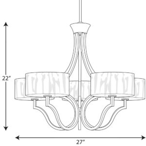 Five-light chandelier. Caress features a chic, sophisticated five-light chandelier featuring a Polished Nickel metal frame with layered glass diffusers to cast a glimmering light. An outer shade of clear, water glass adds rich texture and playful reflections from a central etched glass diffuser. Unique stem-hung construction carries the clean line all the way to the ceiling and, for sloped ceilings, 6 links of 9 gauge chain is provided to allow the fixture to hang straight and level. This fixture utilizes E12 based sockets so the bulbs are provided for your convenience.