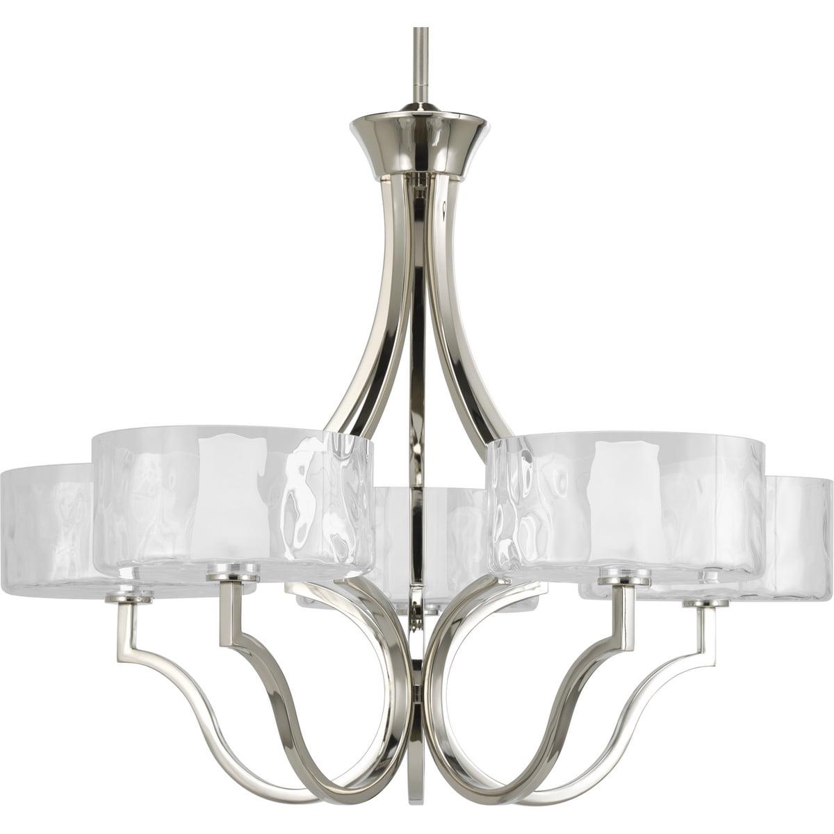 Caress Collection Five-Light Polished Nickel Clear Water Glass Luxe Chandelier Light