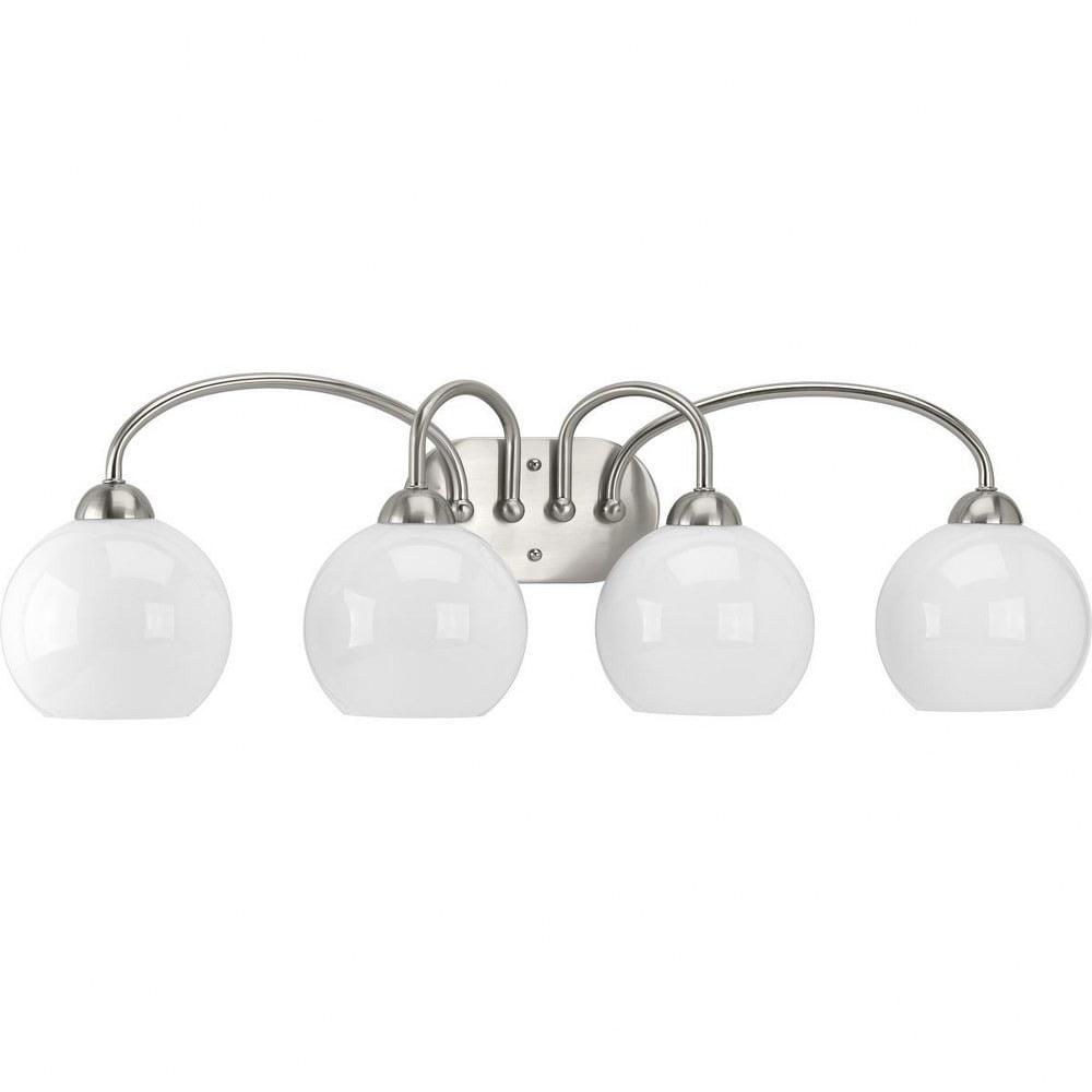 Carisa Collection Four-Light Brushed Nickel Opal Glass Mid-Century Modern Bath Vanity Light