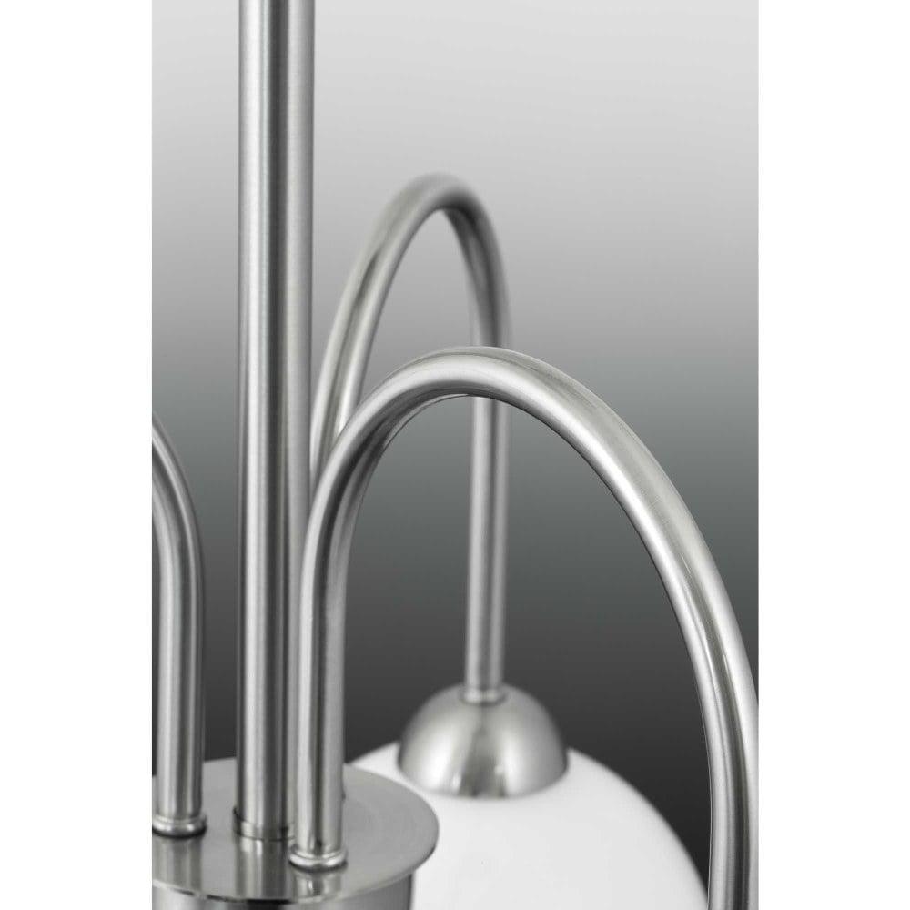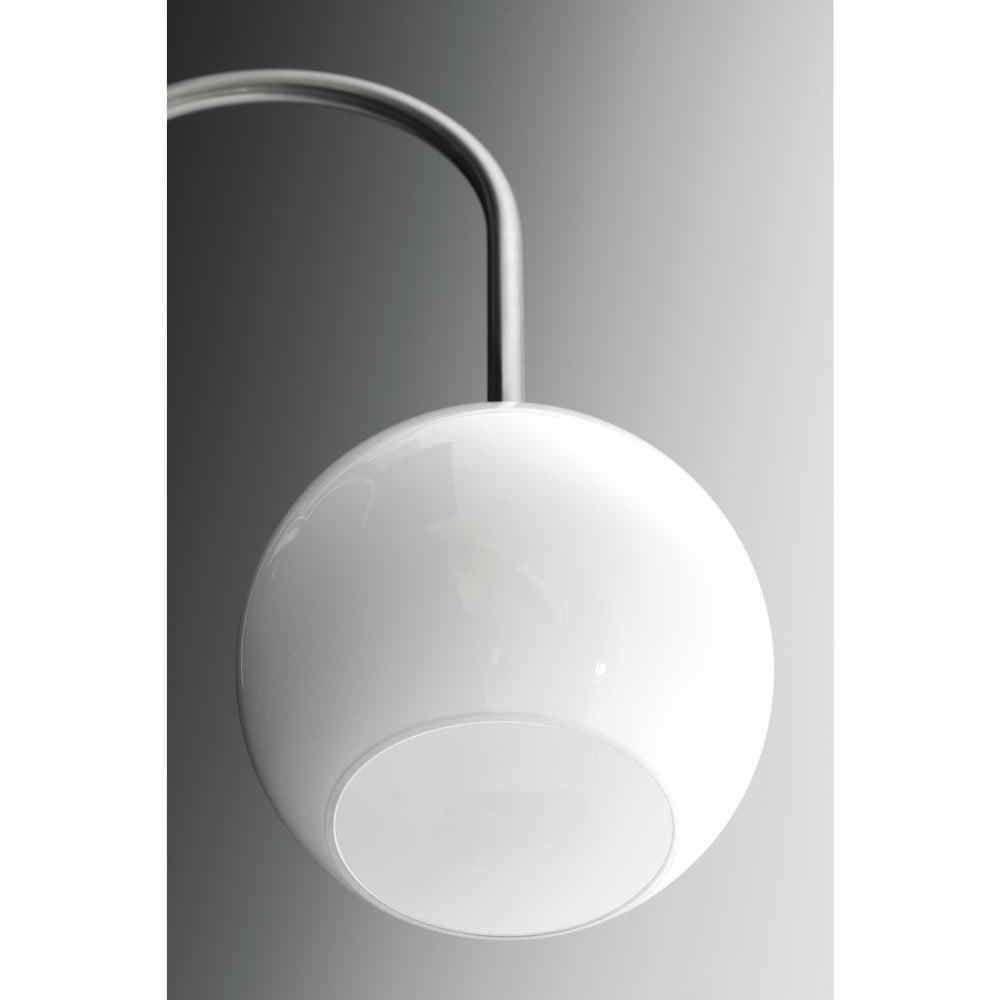Inspired by the revival of mid-century fashions, the Carisa collection brings home this classic style. A metallic finish supports glossy white glass globes to create a timeless modern design. Four-Light Bath in a Brushed Nickel finish.
