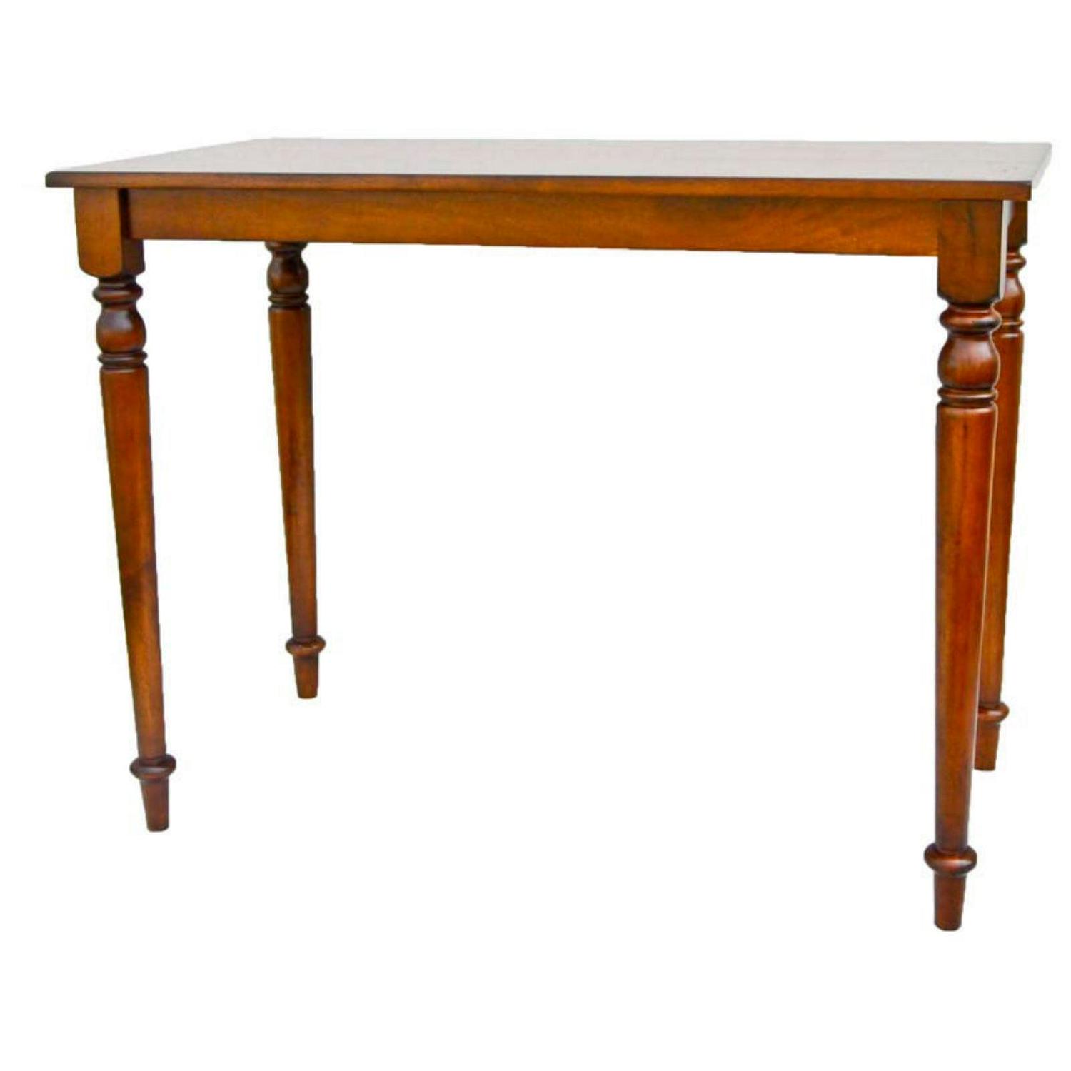 Reminiscent of French provincial style, the elegant Carolina Hawthorne Pub Table is a beautiful addition to any home bar area. With carved accents, beautifully turned legs, and arrow feet, this bar table is perfect for serving drinks and appetizers or for playing a game of cards. As stylish as it is sturdy, the Hawthorne is sure to become a focal point in your home for years to come. This table is constructed of solid hardwood and available in the following finishes: antique white, antique black, and chestnut. Dimensions: 48L x 24W x 36H inches.