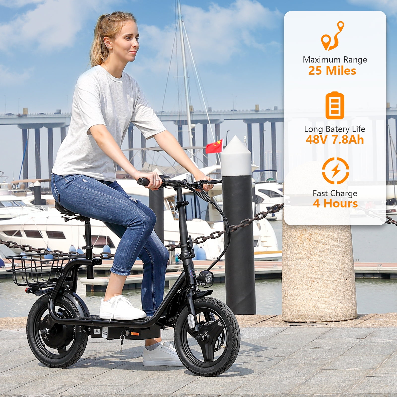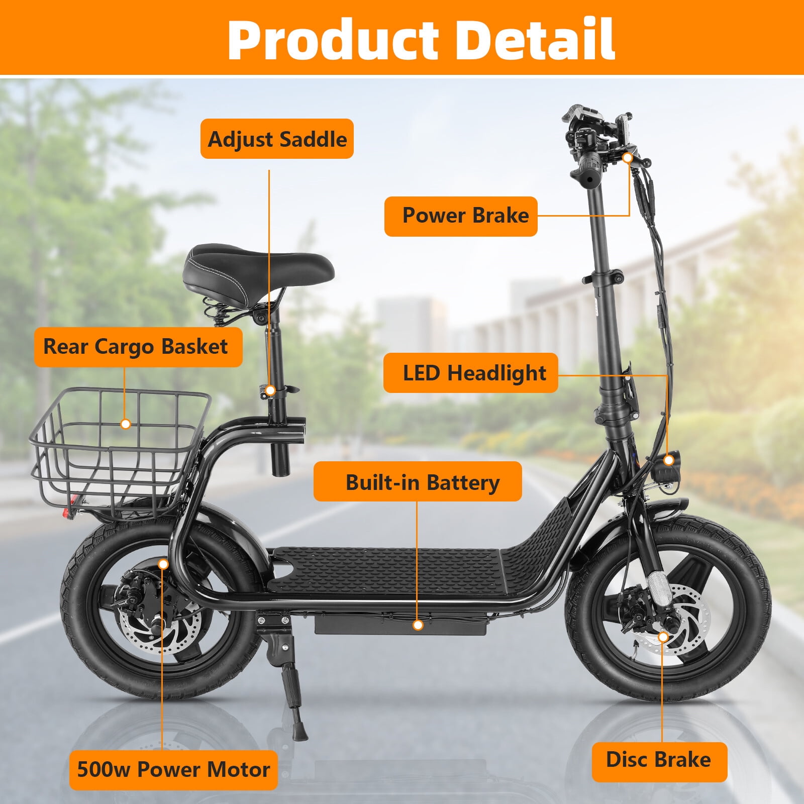 HOTEEL Electric Scooter with Seat, 819W Peak 500Wh Battery 25 Miles Range 20Mph Top Speed, Foldable Electric Scooter for Adults with Basket, Black