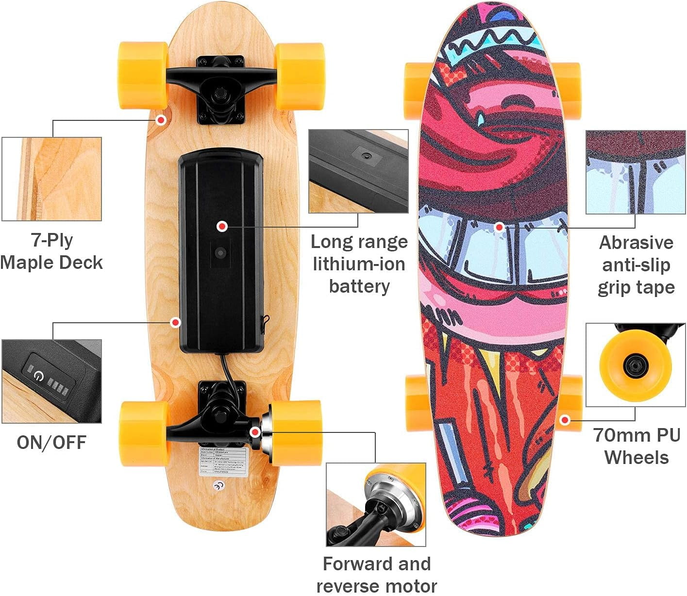 COBIZI Electric Skateboards for Adults and Beginners,Max 12.4 MPH and 8 Miles Range, with Wireless Remote Control , Ideal Skateboard Gifts