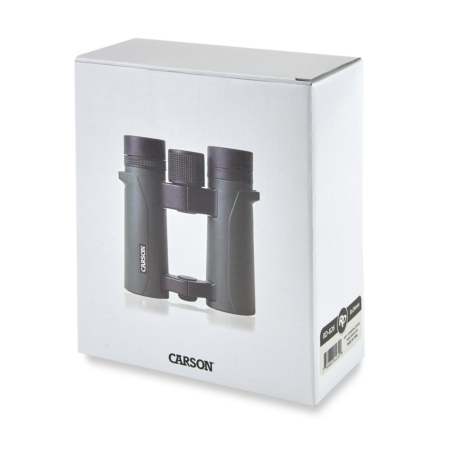 The Carson RD Series 8x26mm Open-Bridge Compact Waterproof High Definition Binoculars. RD-826 is a compact binocular with a contemporary open bridge design. These compact binoculars boast high quality BAK-4 prisms and multi-coated optics to ensure a crisp, bright image. A durable, waterproof design ensures a clear view. Its compact, light design make it an ideal companion for concerts, sporting events, hiking and any outdoor activity. Store in its hard protective case when not in use.