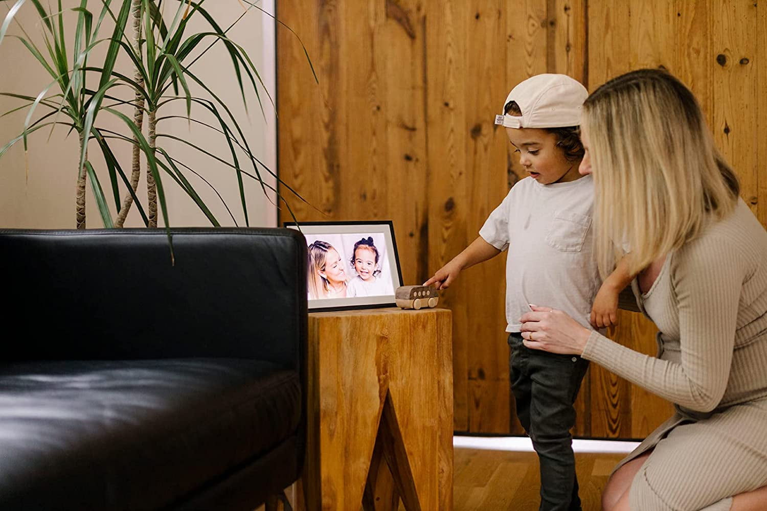 Simple setup. From phone to frame. Simply plug in your frame, connect to your WiFi network, and the Aura app will guide you through the rest. Available on iOS and Android. Snap and share. Instantly add and display photos from anywhere in the world using the Aura app. No USB cords. No SD cards. Staying connected has never been easier. Share memories with family and friends. Share photos and videos with close family and friends and invite them to share too. The people you want, the photos you love. Private and secure. Simple as that. Free unlimited storage. Support for 10,000+ photos, no subscription fees. Compatible with iOS and Android