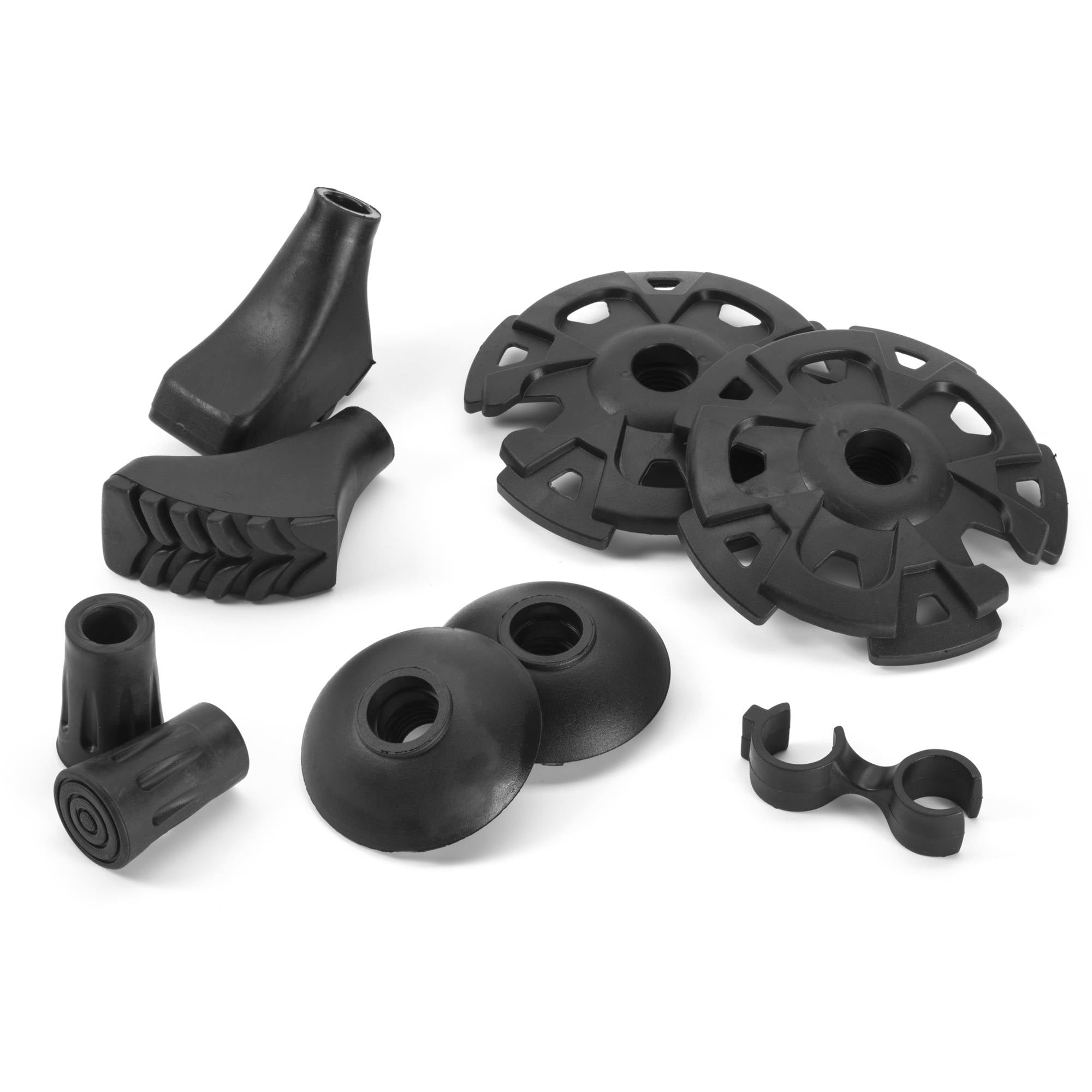 Cascade Mountain Tech Carbon Fiber Quick Lock Trekking Pole Set: Set of two trekking poles Shaft Material: 100% Carbon Fiber Grip Material: Comfortable Cork Grip Green graphic design Locking Mechanism: Quick Lock mechanism for quick adjustability Extendable from: 26” – 54” Single Pole Weight (without rubber tips): 7.8 OZ or less than a pound Tip Kit Includes: Carry Case, Round Rubber Tips, Boot Tips, Sand/Mud Baskets, and Snow Baskets Tip Material: Tungsten Carbide Ideal for hikers, walkers, backpackers, campers, and more