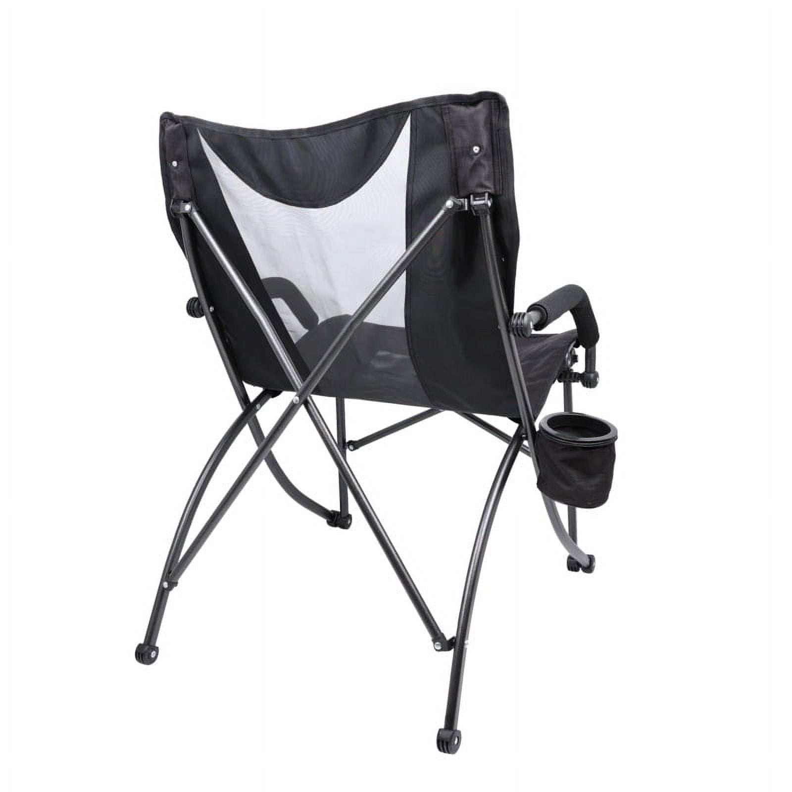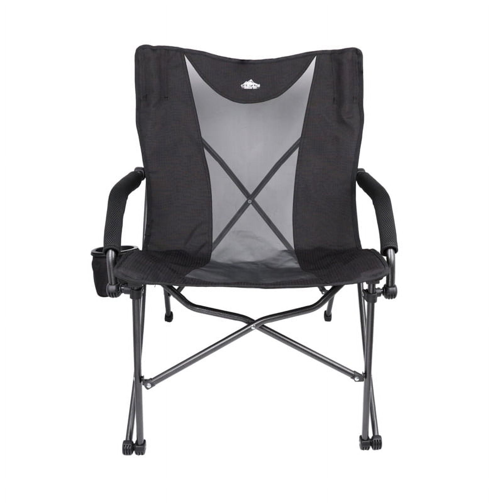 The Heavy Duty LP Camp Chair is the ultimate must-have for outdoor relaxation. This foldable camp chair combines comfort and durability for the modern adventurer, backyard BBQ goer, or little league spectator. Stay cool on warm days with the breathable mesh back, while the heavy-duty frame and ripstop fabric ensure long-lasting resilience to the rigors of the outdoors. Padded armrests elevate your comfort, providing a luxurious seating experience. Enjoy your favorite beverage with ease using the built-in cup holder, always within arm’s reach. When it’s time to move, the chair quickly folds up to easily fit into a convenient carrying bag for easy transportation. Made for all ages.