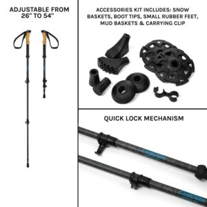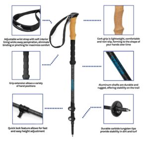 Cascade Mountain Tech carbon fiber quick-lock trekking poles are perfect for every outdoor enthusiast. They are ideal for hiking and walking uphill, downhill, and on flat terrain. This pair of adjustable trekking poles are made from 100% carbon fiber that is very lightweight and will last through all your adventures. The “Quick-lock” mechanism allows for easy height adjustment when in use. These trekking poles will improve your hiking endurance and allow you to reach new heights.