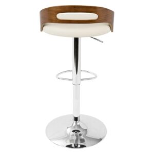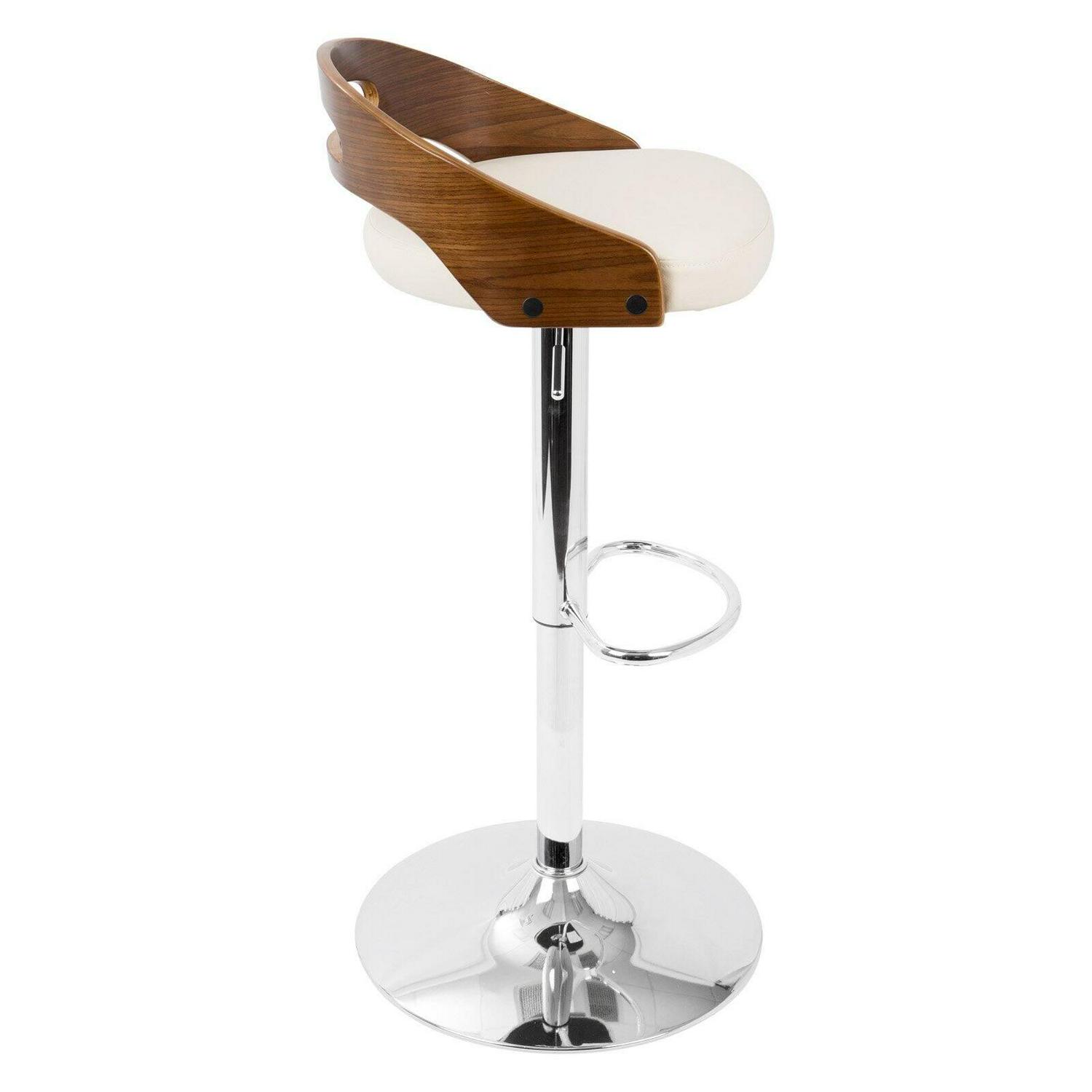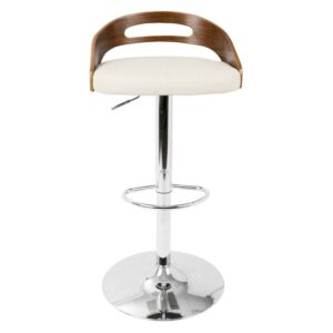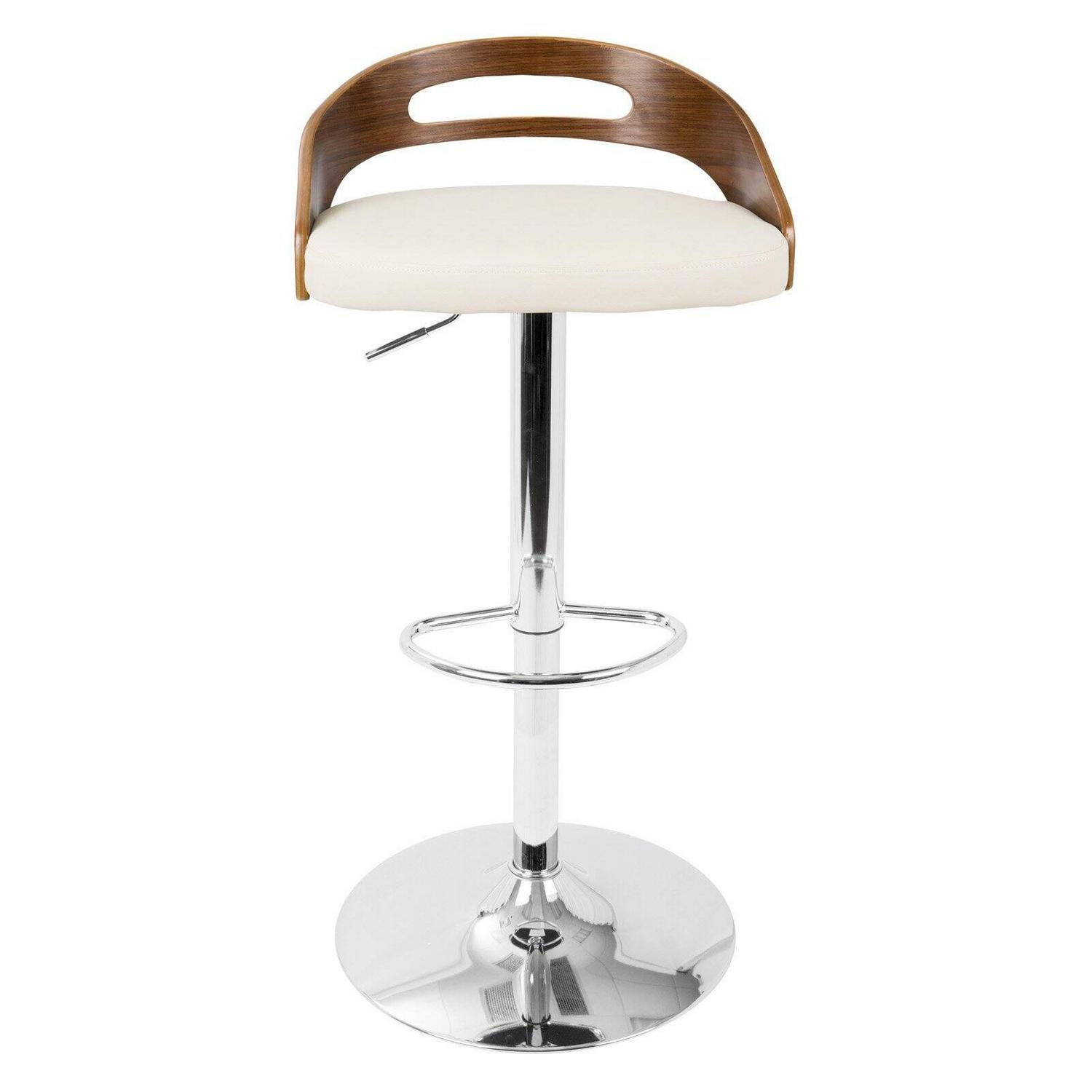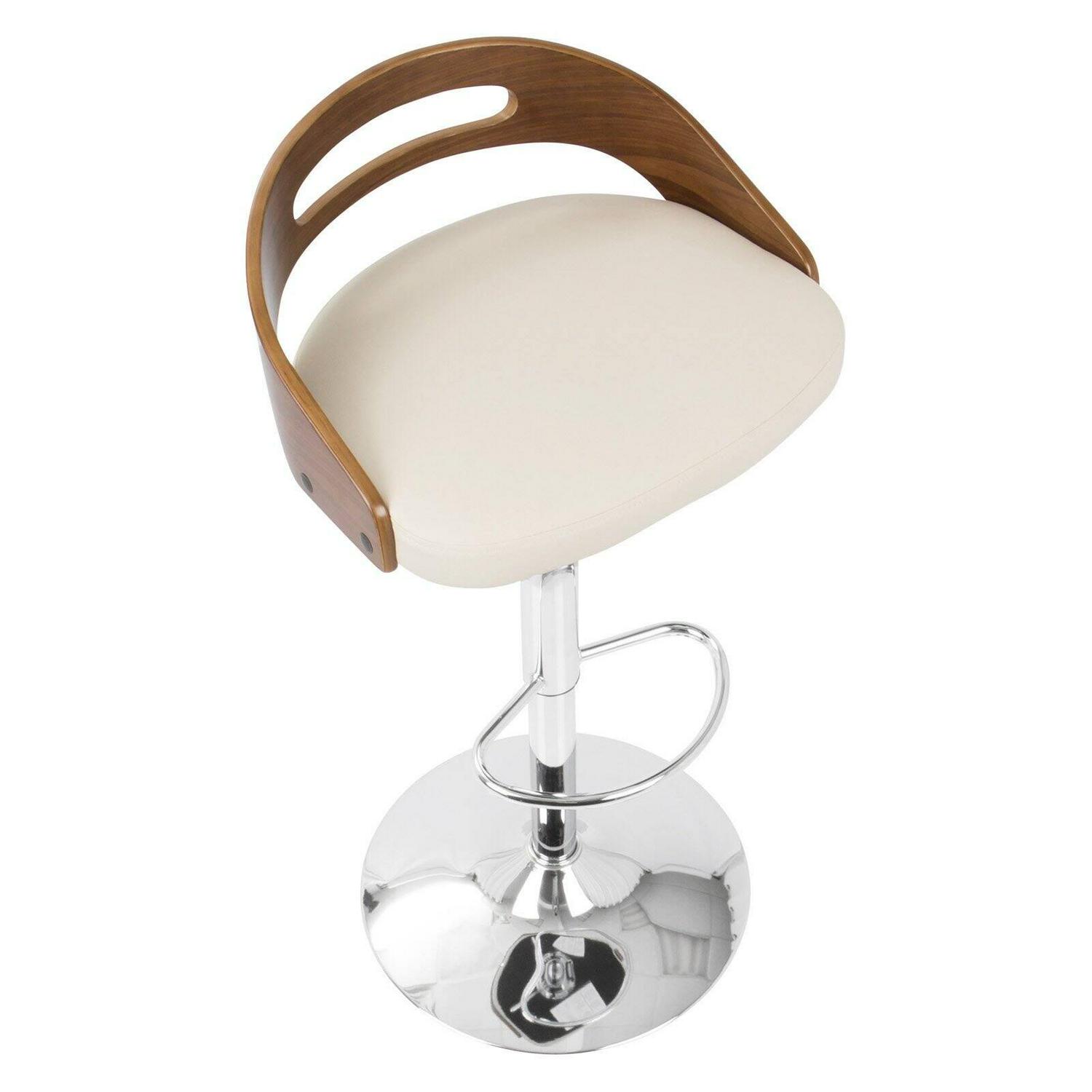 Cassis Mid-Century Modern Adjustable Barstool With Swivel In Walnut And Cream Faux Leather Description: