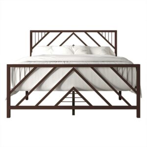 Castle Place Modern Geometric Slat Twin Size Metal Platform Bed, Brown