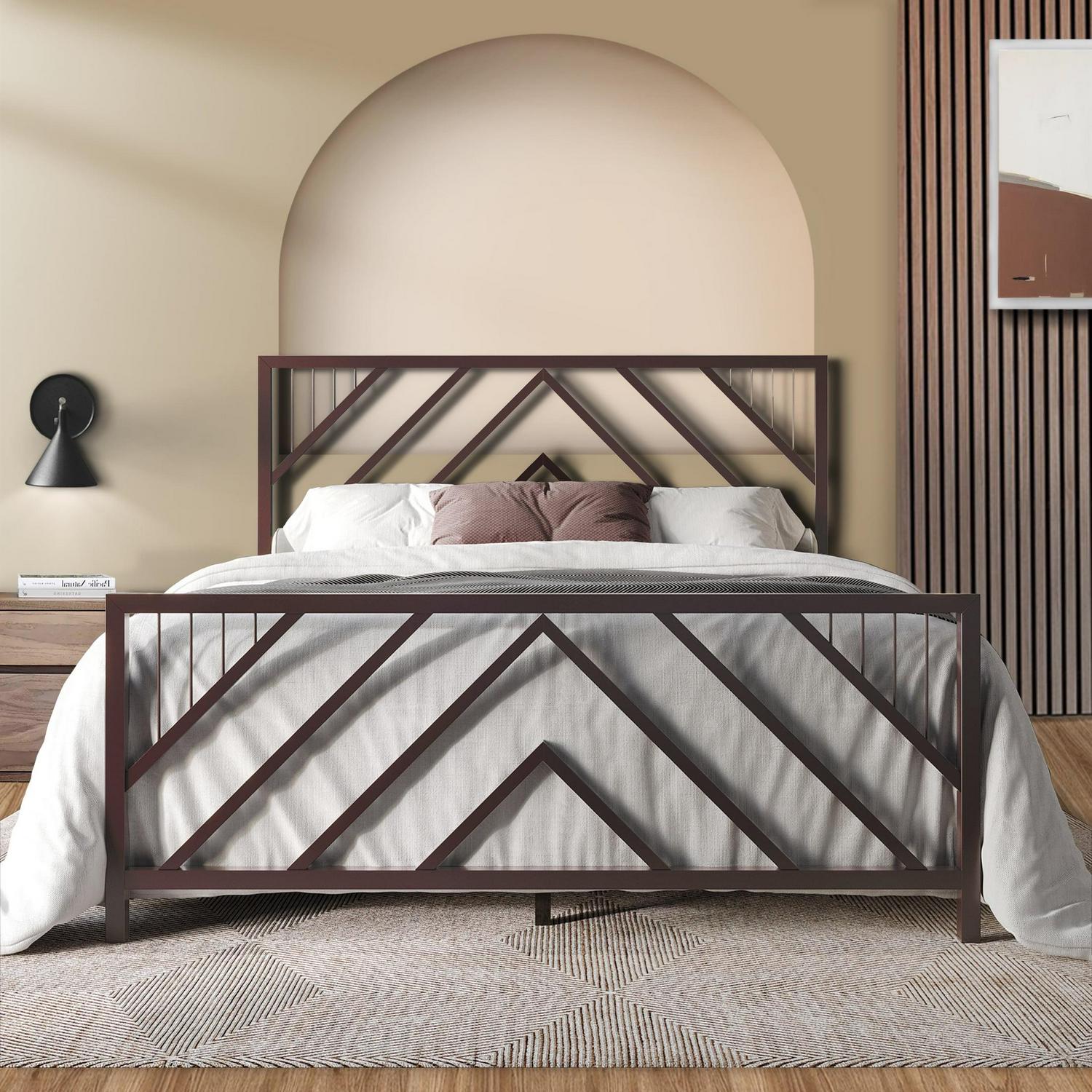 – Features with geometric slatted design headboard and footboard creates a modern and stylish look to your bedroom